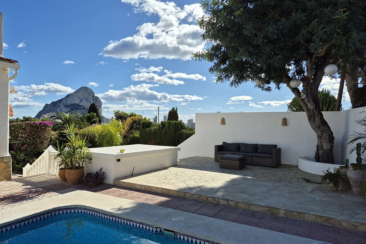 Intorno alla splendida piscina illuminata c’è ampio spazio per rilassarsi sui lettini o per grigliare del pesce al barbecue. La profondità della piscina varia tra circa 110-210 cm. Doccia esterna (c+a) presente. Dal terrazzo sul tetto si gode di una splendida vista sul Penon d'Ifach, sul mare e sui dintorni.