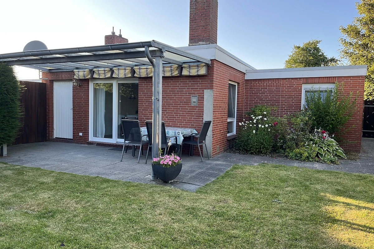 La casa, costruita nel 1970, è su un unico livello. Si trova a Dornumersiel, sulla costa del Mare del Nord, in un villaggio di case vacanza e si trova direttamente dietro la diga, con un breve sentiero per la spiaggia, la casa di cura e la piscina d’acqua di mare.