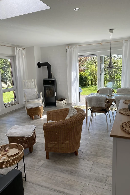 La proprietà è completamente recintata e garantisce così anche una vacanza rilassante in giardino. Sotto la terrazza coperta ci si può sentire al sicuro anche durante un acquazzone. WC e doccia sono separati l’uno dall’altro. La cameretta è dotata di un letto da 1,40 m x 2,00 m. Tutte le stanze sono state arredate da noi con amore in stile marittimo.