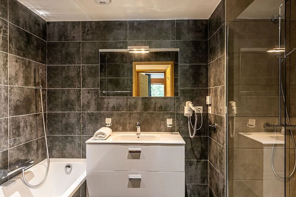 Svegliatevi circondati dall'aria di montagna, dai profumi della foresta e dal tenue bagliore della luce del sole alpino. Questo elegante appartamento per 6 persone è progettato per il comfort e la connessione, con una lussuosa zona giorno (con soundbar Bluetooth inclusa per la vostra playlist!), un'elegante cucina moderna per avventure culinarie e tre accoglienti camere da letto con letti singoli per un sonno ristoratore. Due bagni moderni (più un WC separato!) rendono il risveglio più facile, che siate un gruppo di amici o una famiglia con piccoli esploratori.