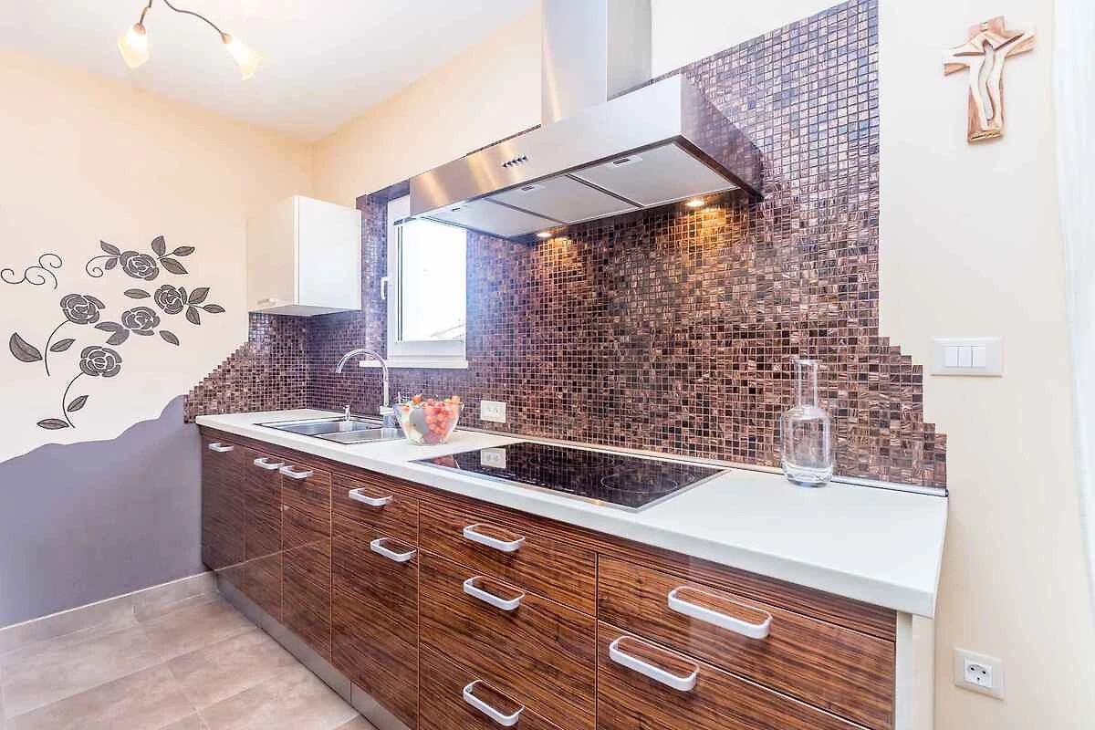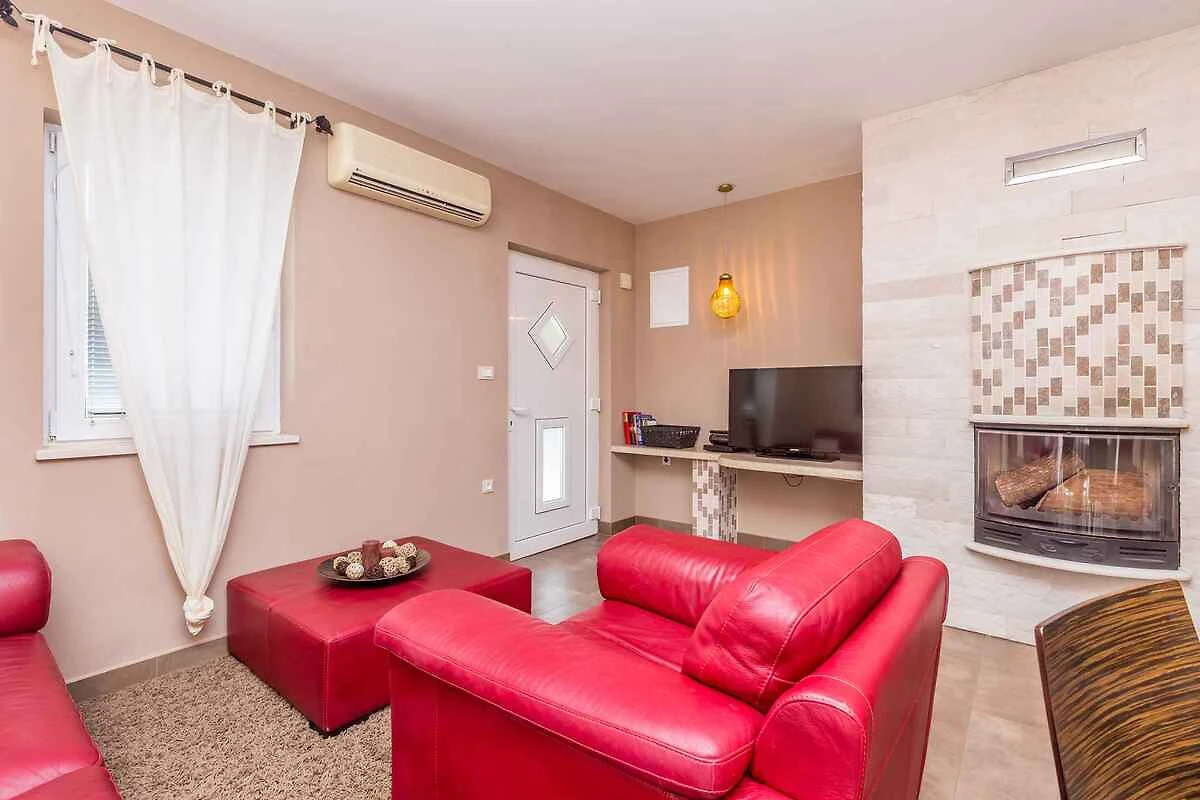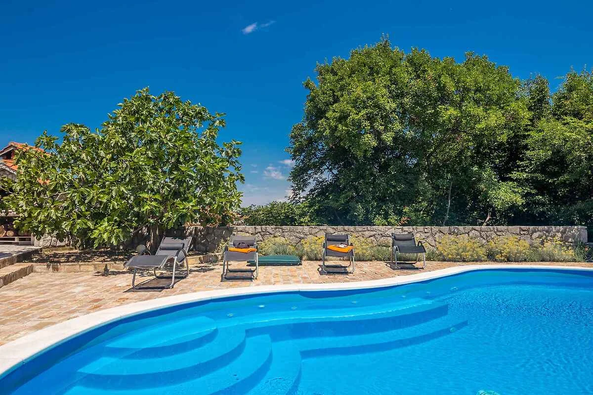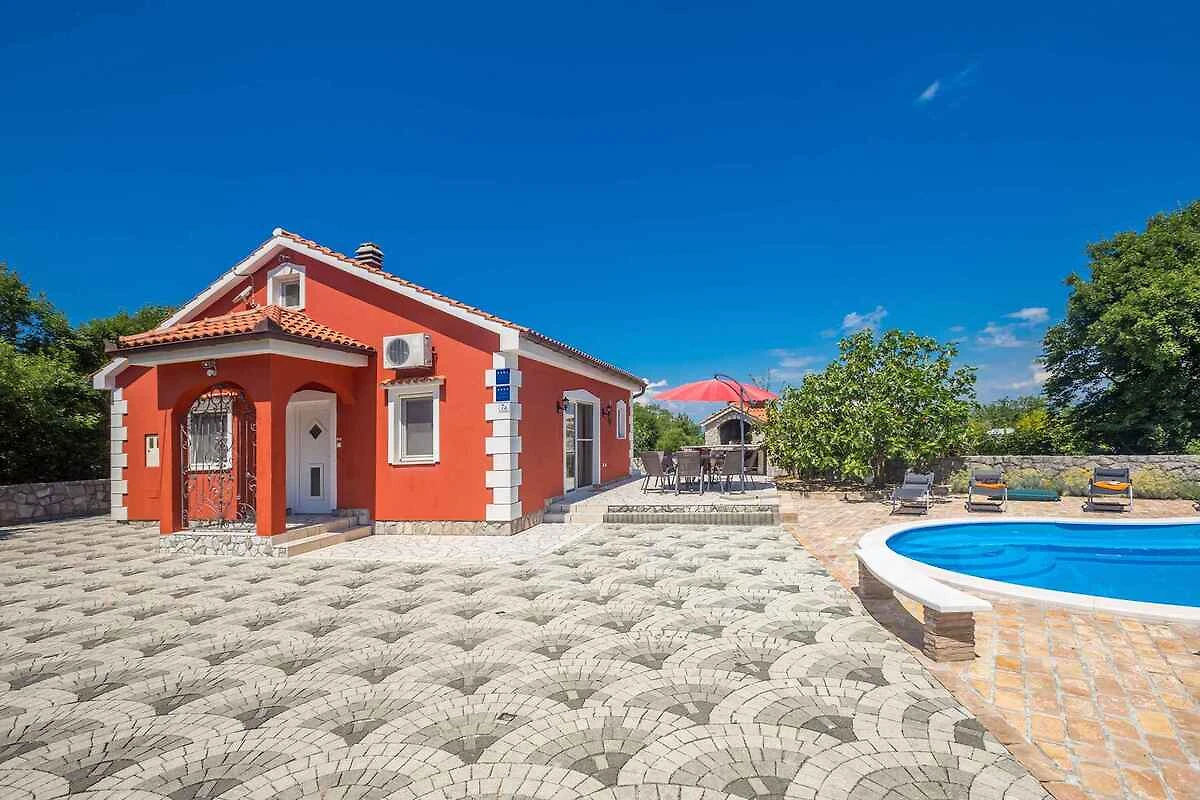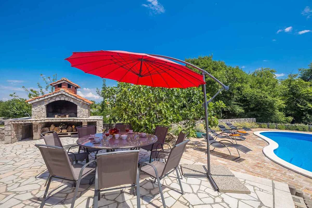 Sveti Vid Dobrinjski, frazione Sveti Vid Dobrinjski. La villa si trova in una trama del giardino chiuso, grande 500 mq con prato, fiori, arbusti e alberi, delimitata da una recinzione e una siepe. Il proprietario non abita nella casa o nella proprietá. Si tratta di due unità separate, con due ingressi separati. Nel giardino c'è una bella cucina estiva con un'ottima griglia. L'accesso avviene attraverso una strada (asfaltata). Parcheggio sulla proprietà.
