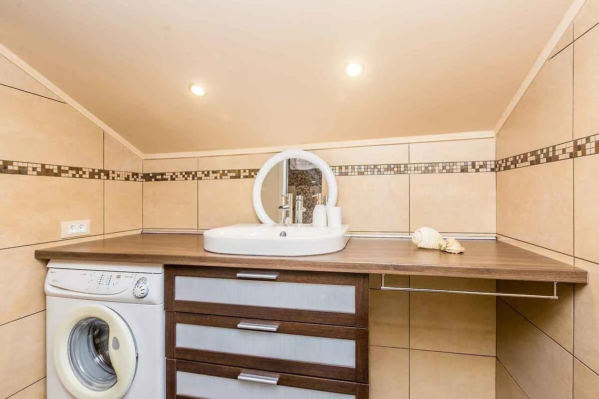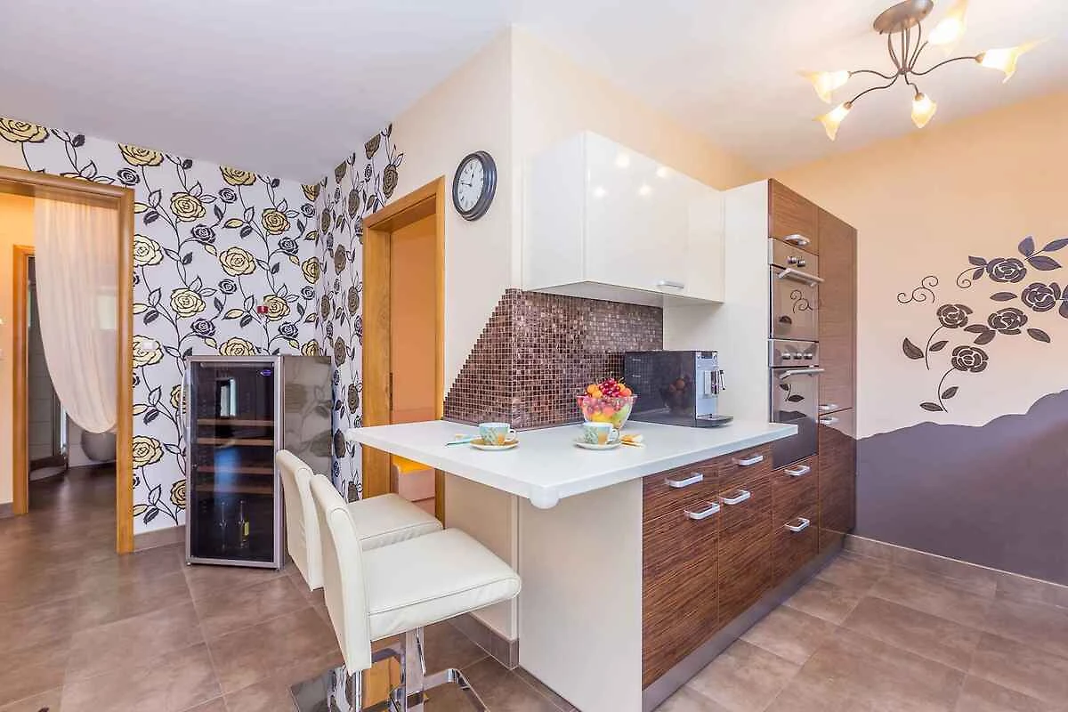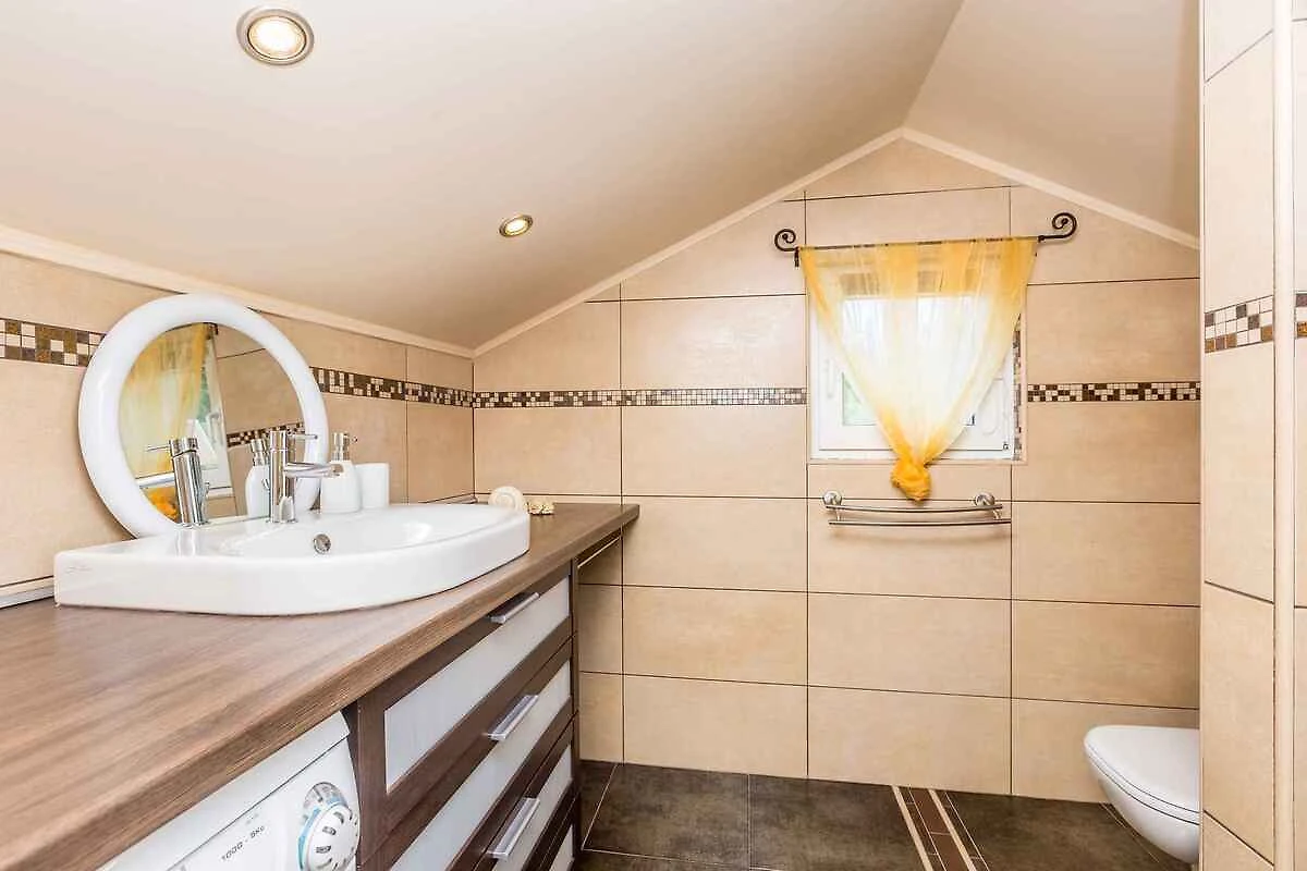 La villa indipendente è arredata moderna e di lusso. La proprietà si trova in periferia. Anche a causa della vista dalla struttura sul mare e tranquilla e soleggiata posizione, il domicilio è popolare. Attrezzature ad uso esclusivo: prato per prendere il sole, ombrellone, lettino da sole, doccia da giardino, possibilità di grigliare, terrazza e mobili da giardino. cucina all'aperto