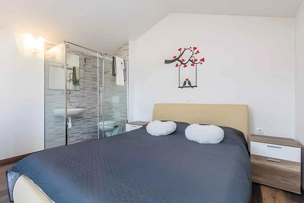 La villa indipendente è arredata moderna e di lusso. La proprietà si trova in periferia. Anche a causa della vista dalla struttura sul mare e tranquilla e soleggiata posizione, il domicilio è popolare. Attrezzature ad uso esclusivo: prato per prendere il sole, ombrellone, lettino da sole, doccia da giardino, possibilità di grigliare, terrazza e mobili da giardino.