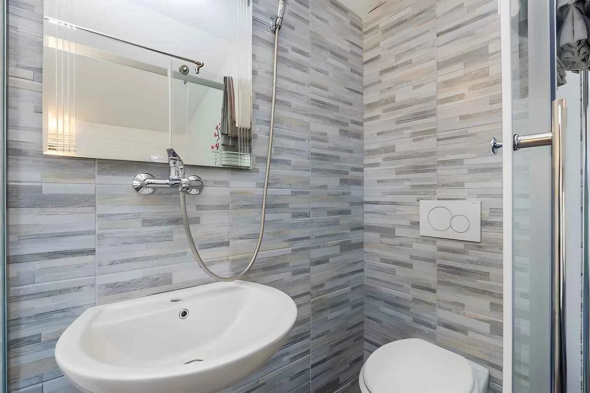1° piano: Camera da letto con 1 letto matrimoniale. Bagno con lavatrice, doccia, 1 lavandino, WC, asciugacapelli e finestra. Camera da letto con 1 letto matrimoniale.