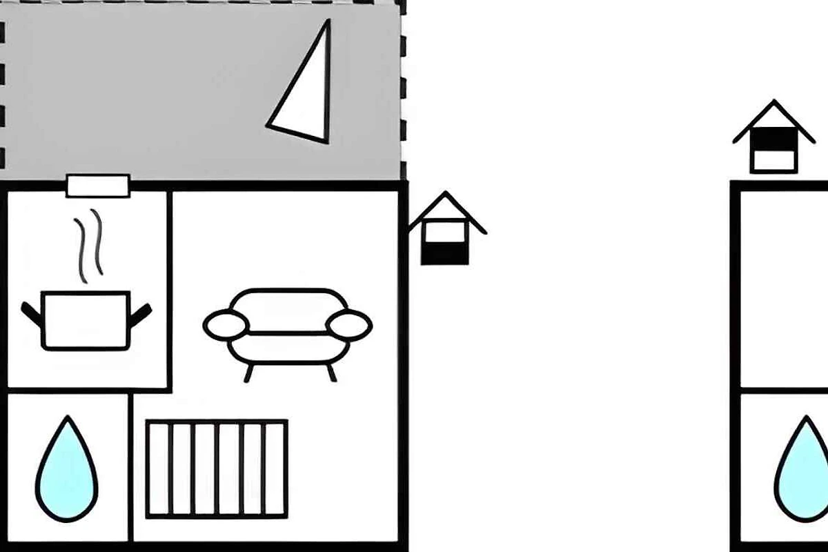 Piano terra: Soggiorno/camera da letto con 1 letto aggiuntivo su divano/sofa. Cucina in soggiorno/camera da letto con TV, zona pranzo, fornello elettrico (piano cottura ceran), forno, cappa aspirante, lavastoviglie, frigorifero (scomparto del ghiaccio), microonde, caffettiera, bollitore elettrico e lavatrice. Bagno con doccia, 1 lavandino, WC e asciugacapelli.
