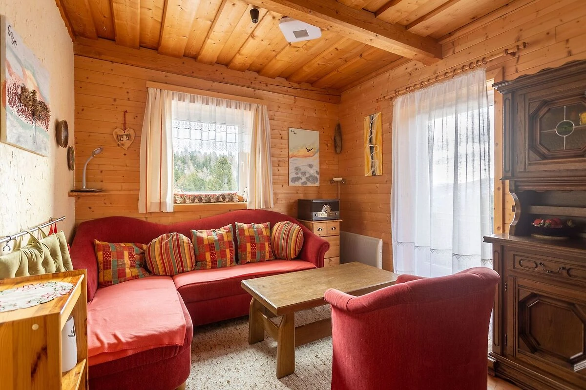 Questa casa vacanze/chalet indipendente per un massimo di 6 persone si trova su una collina (1763 m) in un posto tranquillo nel bosco nella pianura Turracher Höhe / Reichenau in Carinzia, che offre l'altopiano Alm-See con 3 laghi di montagna sul Al confine della Carinzia con la Stiria una bellissima vista sui Nockberge.
