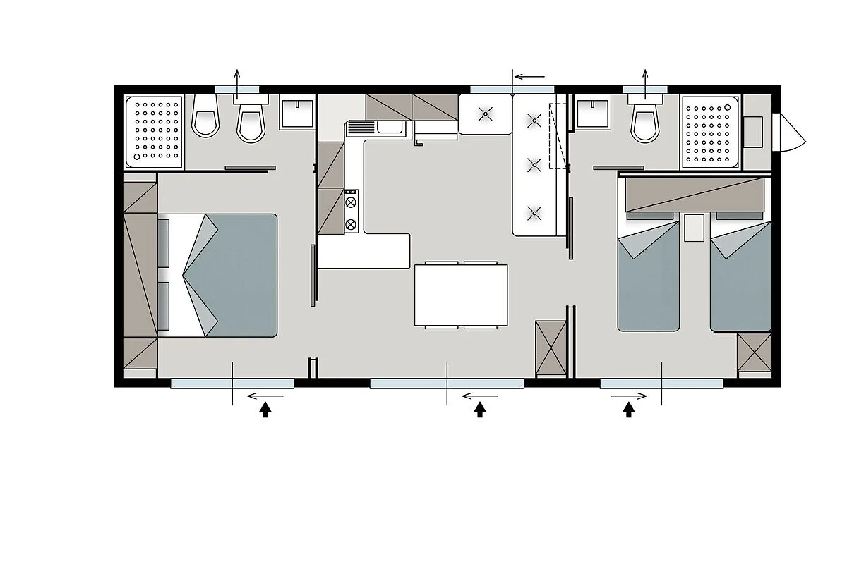 Ampio complesso turistico direttamente sulla bellissima spiaggia di ciottoli in leggera pendenza con case mobili arredate in modo moderno e di alta qualità. A seconda della posizione della casa mobile, la spiaggia dista solo da 20 a 200 metri, dove sono disponibili due lettini per ogni casa mobile. 1 posto auto per casa mobile incluso, 2° posto auto EUR 9,00 al giorno. Il campeggio è circondato da un bosco di 57 ettari con querce dalmate e ulivi. Oltre al sole e al mare, qui puoi goderti una vacanza varia con un variegato programma di animazione e numerose offerte attive. Ci sono solo sei piscine d'acqua dolce sul sito, alcune con jacuzzi, e lungo la spiaggia troverai una varietà di sport acquatici e vari bar sulla spiaggia. Per un'abbronzatura senza soluzione di continuità, la struttura offre anche una spiaggia per nudisti.Come seconda città più grande dell'isola di Pag, l'ex villaggio di pescatori di Novalja si è ora sviluppato in una popolare destinazione turistica. Il tratto di costa tra Novalja e Zrce è ora conosciuto come l'Ibiza della Croazia. La stessa Novalja è più che all'altezza di questo nome con tutti i suoi accoglienti bar e le moderne discoteche. A pochi chilometri di distanza, la spiaggia per feste più popolare ti aspetta la sera: a Zrce puoi festeggiare direttamente in riva al mare fino all'alba.In evidenza: costi energetici basati sull'utilizzo, biancheria da letto, asciugamani, pulizia finale, WiFi.Attività nelle vicinanze: Ci sono un totale di 6 piscine d'acqua dolce con una superficie totale di circa 600 metri quadrati per nuotare e sguazzare. Due delle piscine hanno una vasca idromassaggio con spazio per un massimo di 6 persone. C'è anche 1 piscina per bambini (86 mq). Le escursioni da Pag vi porteranno nell'entroterra verso le affascinanti città costiere di Zara, Rijeka e Spalato, o nell'entroterra fino a Zagabria. Il magnifico mondo dell'isola ti invita a fare gite in barca da solo o con barche da escursione. Queste deviazioni verso isole piccole e grandi possono anche essere combinate molto bene con interessanti escursioni subacquee