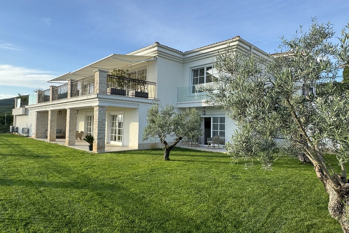 La villa è arredata con gusto e con materiali di alta qualità e ha 400mq di spazio vitale. Il soggiorno è spazioso, con pavimento in parquet di quercia, luminoso e grande porta-finestra sulle terrazze, il verde giardino curato e la spiaggia della piscina con fino a 8 sedie a sdraio e una splendida vista panoramica di Crikvenica e il Golfo del Quarnero. La cucina completamente attrezzata con un grande tavolo da pranzo per un massimo di 8 persone è collegata al soggiorno.