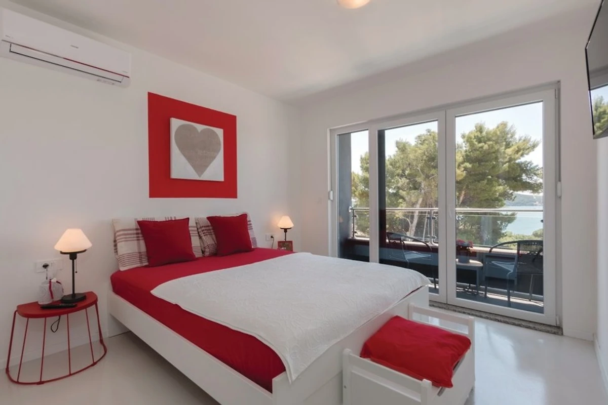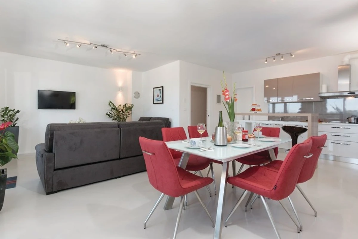 Una splendida terrazza esterna coperta con grill, un balcone con una vista panoramica perfetta sul mare e sulla piscina invitano a una vacanza perfetta e rilassante.