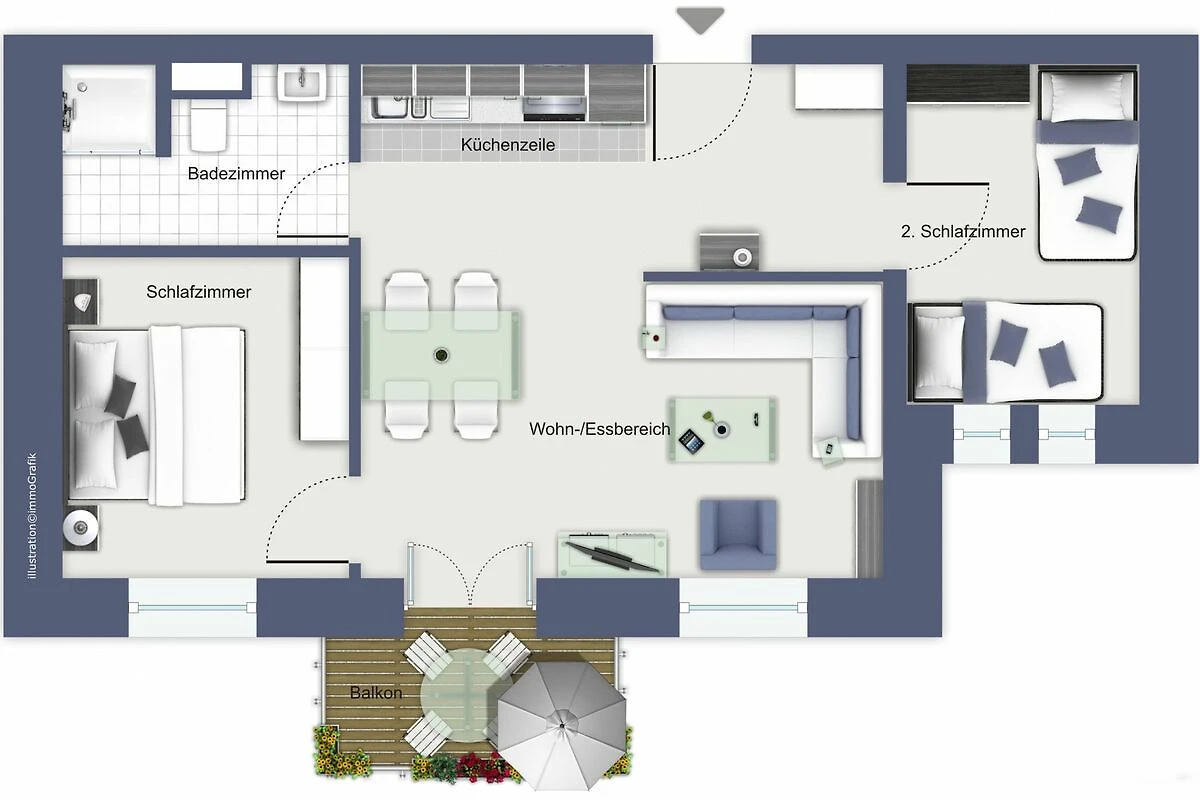 Una bella appartamento in ottima posizione. Il letto nella camera da letto è stretto (160 cm). L'arredamento della cucina è ottimo. Il piccolo balcone è un vero valore aggiunto in caso di bel tempo.