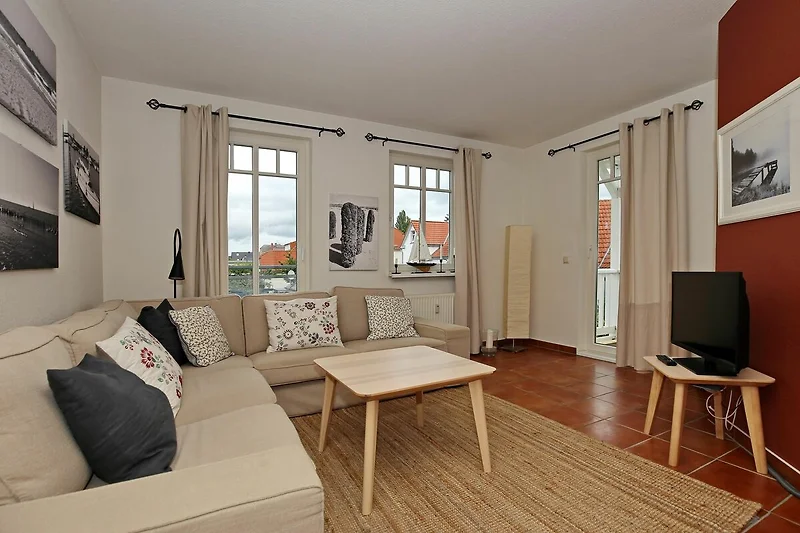 La spiaggia e il molo sono ancora facilmente raggiungibili a piedi. L'appartamento è molto luminoso e arredato in modo accogliente. Non manca nulla nell'attrezzatura! Il bagno con doccia spazioso, grandi armadi e una cucina davvero confortevole sono adatti anche per un soggiorno prolungato. Tuttavia, il balcone è molto piccolo e utilizzabile solo per due posti a sedere con tavolino. Il posto auto annesso all'appartamento è molto ampio - è molto facile parcheggiare.