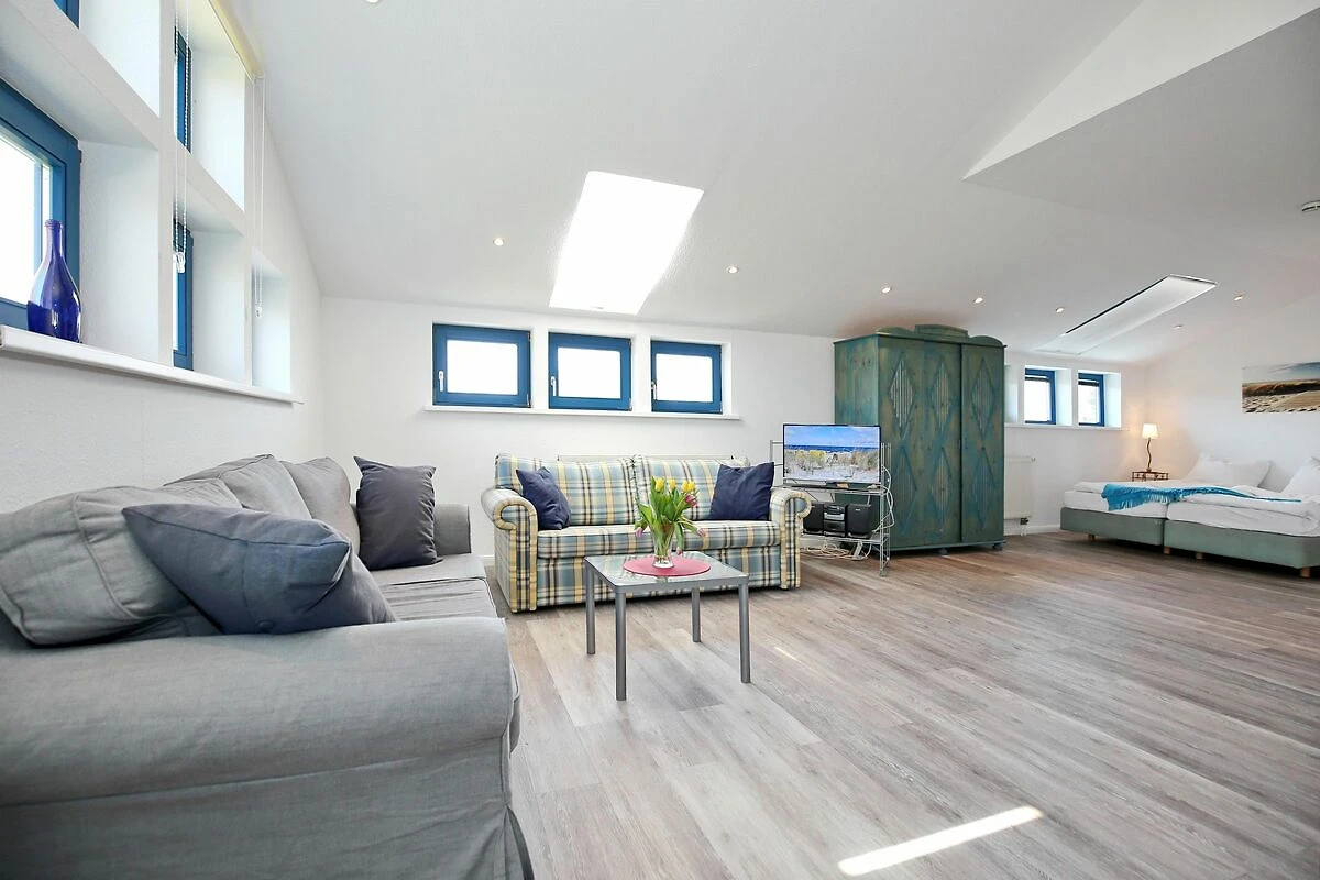 Abbiamo trascorso una settimana di Capodanno in questo appartamento moderno. Un grande spazio in cui sono presenti un letto matrimoniale con materasso morbido, 2 divani, un grande tavolo da pranzo con sedie, un angolo cottura, un armadio, una televisione e un impianto stereo, tutto in modo chiaro e senza "fronzoli". Il bagno è piccolo e separato dal soggiorno principale da una porta. Un bel pavimento, l'alta stanza con soffitto inclinato e 2 lucernari per "guardare le stelle" e i molti piccoli finestrini quadrati inondano l'appartamento di molta luce e sole. Ci siamo sentiti molto a nostro agio e consiglieremmo l'appartamento a tutti coloro che amano vivere in modo moderno e ordinato.