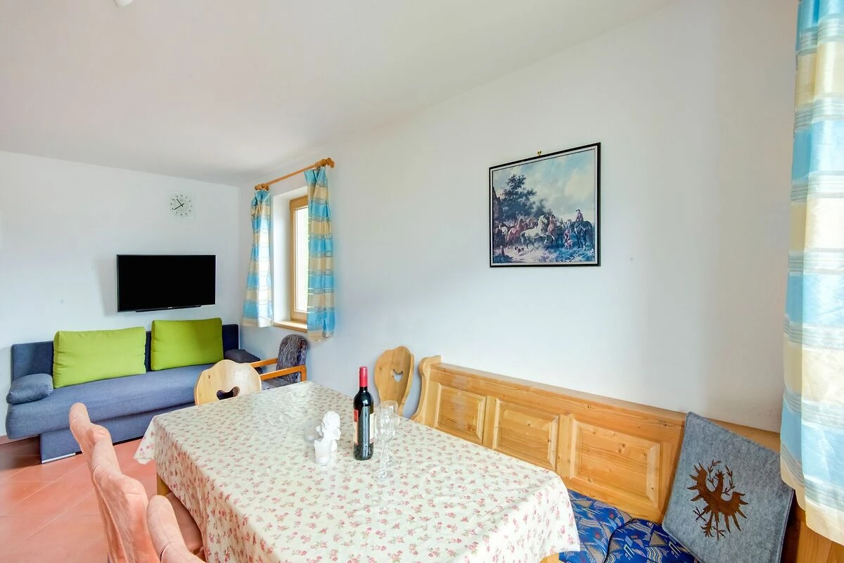 L'appartamento era pulito, spazioso e splendidamente arredato, Ha facilmente ospitato 8 persone, senza sentirsi affollato, Il padrone di casa era gentile e amichevole, e la possibilità di acquistare latte fresco e uova dalla fattoria era decisamente un vantaggio, così come il delizioso pane della panetteria locale, La posizione era tranquilla, e la fattoria vicina era appena visibile, È comodamente situato accanto all'impianto di risalita, e altre attività all'aperto sono facilmente accessibili in auto, Sicuramente prenderò in considerazione questo appartamento per future visite di gruppo.
