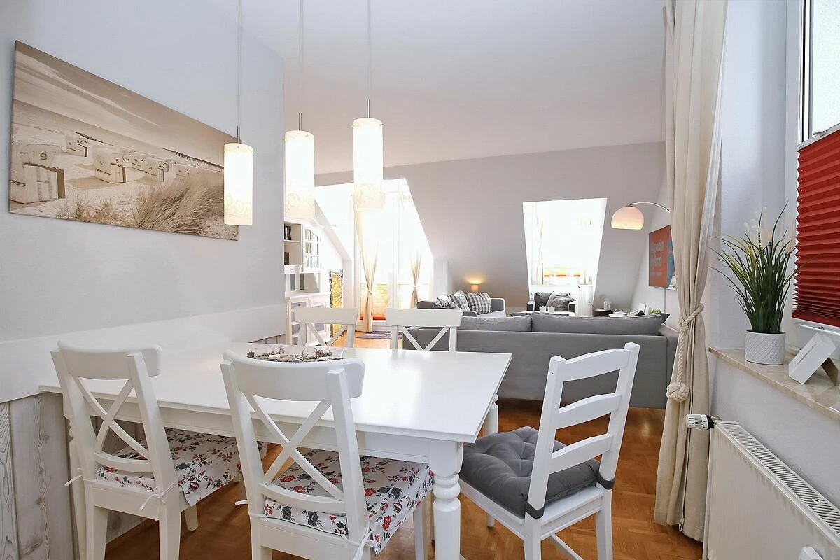 Bella e accogliente appartamento, arredamento in stile IKEA, buona posizione non lontano dalla spiaggia e dal molo, comunque tranquillo. Spazio per 4 adulti e un bambino. Attenzione: scala a chiocciola molto stretta per la camera da letto nel sottotetto - bisogna sempre camminare curvi e non c'è porta intermedia, quindi è anche rumoroso.
