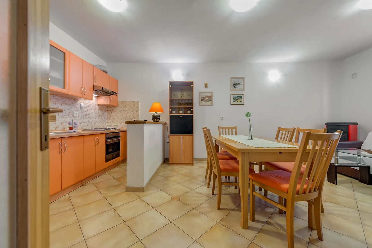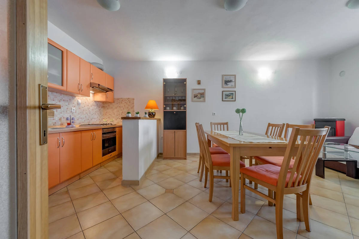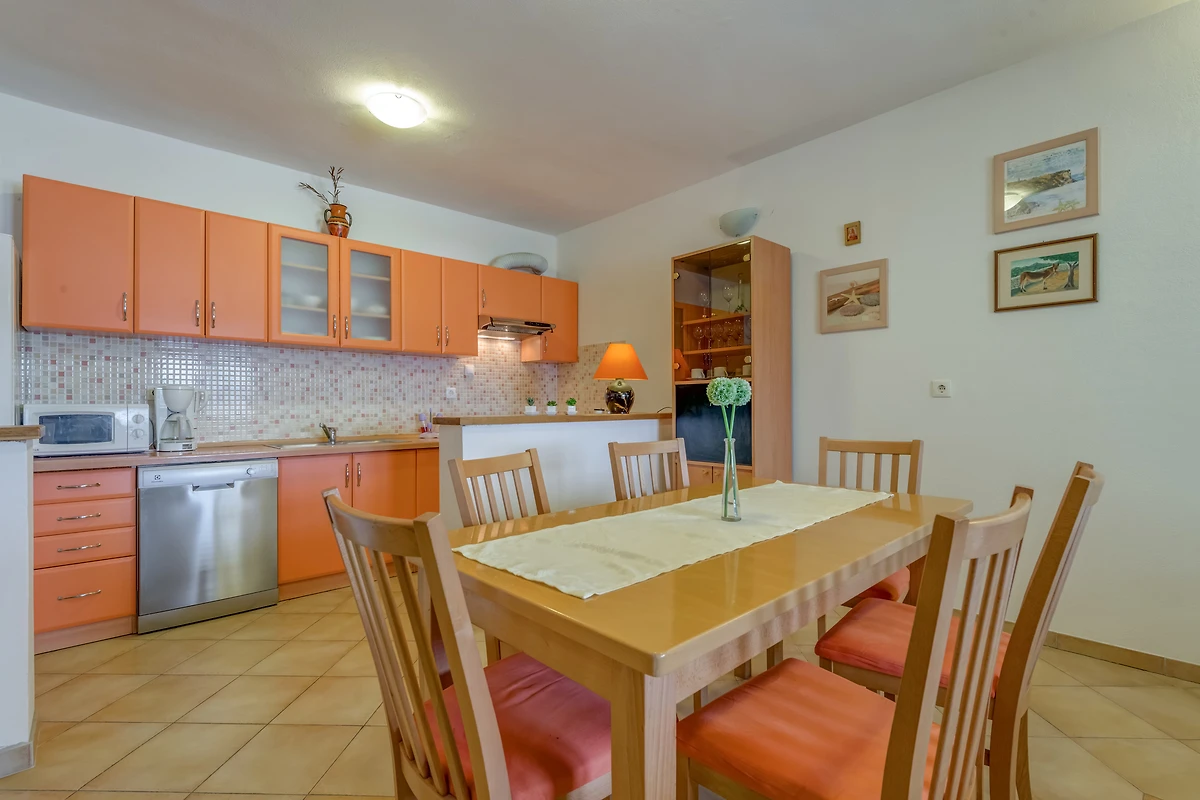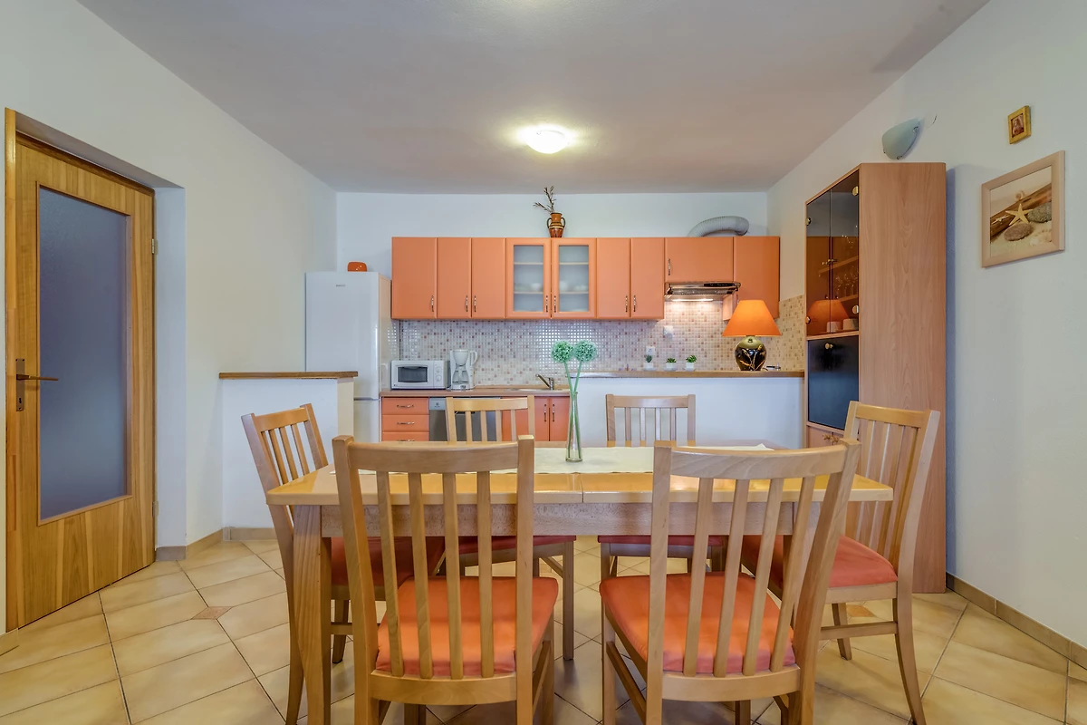 L' appartamento vacanze si trova in una casa unifamiliare, indipendente ed è arredato moderno. La proprietà si trova in periferia. Anche a causa della vista dalla struttura sul mare, il domicilio è popolare. Attrezzature in comune: possibilità di grigliare, terrazza e mobili da giardino.