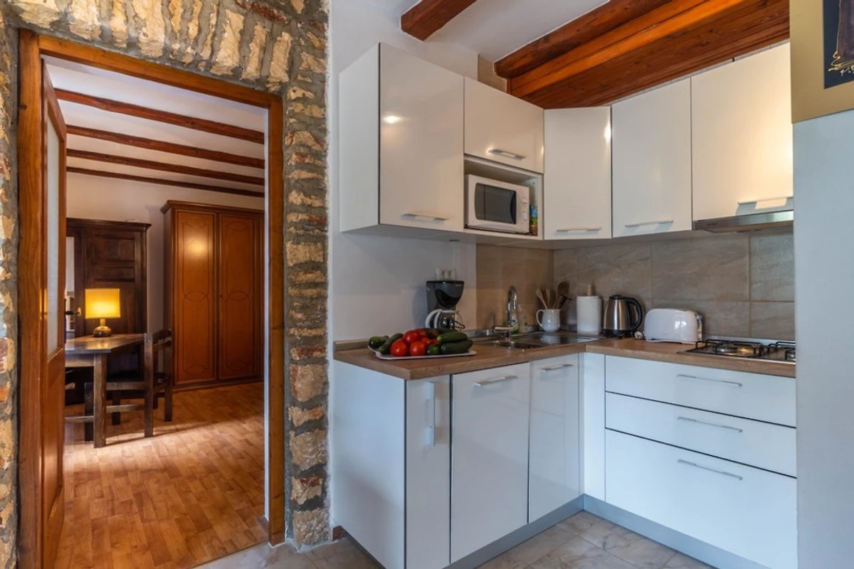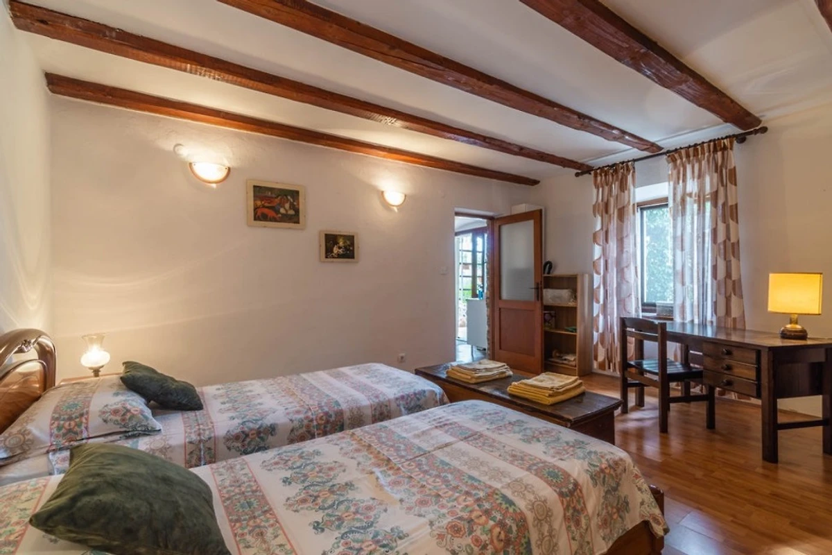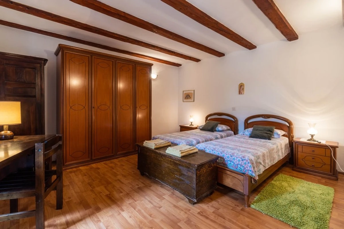 Do you want to have a charming, private accommodation where you can relax and enjoy your vacation in Istria? Villa Casa San Pietro is definitely the right and relaxing choice for you! The villa offers plenty of space where families with children will find themselves completely. The villa has 2 bedrooms and an additional gallery with a double bed. Each bedroom also has air conditioning. The kitchen is fully equipped for cooking. The beautiful and sunny living room has access to a large terrace and an outdoor dining area. In the fenced garden with absolute privacy you can use the barbecue with a large wooden table and chairs. The nearest town and the beach are 2 km away from the holiday home. Restaurants, markets and shops are available without the use of a car.