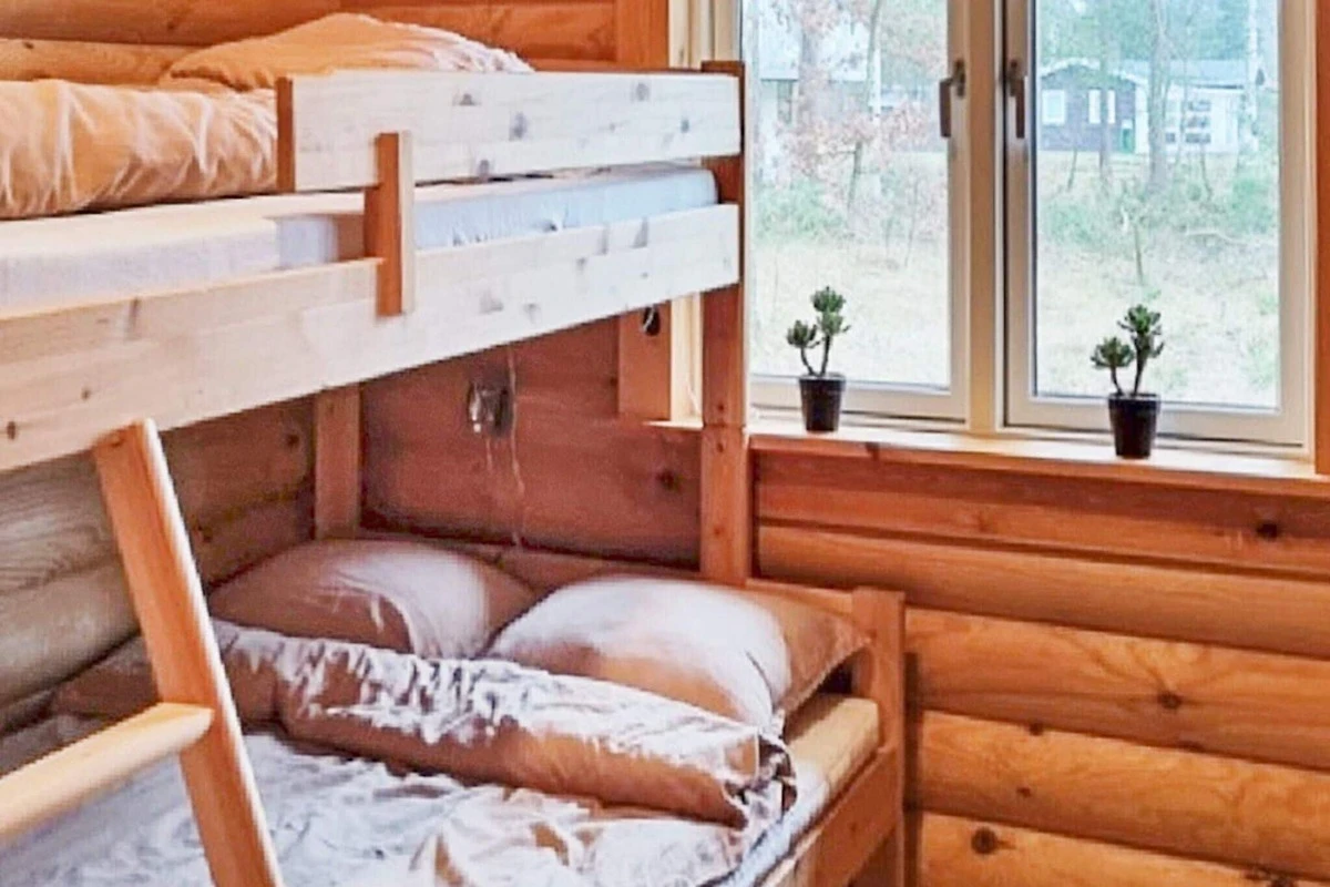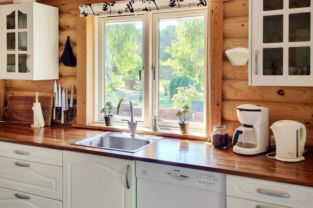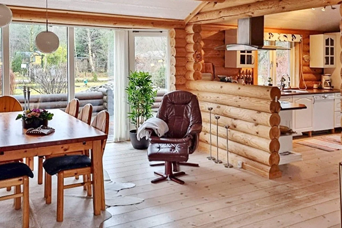 Immersa in un ambiente tranquillo vicino ad Als Odde, questa accogliente casa vacanze in stile tronchi si trova a pochi passi dall'acqua. È il tipo di posto dove le giornate iniziano lentamente, con il canto degli uccelli tra gli alberi e il profumo di pino nell'aria. L'ampio soggiorno, inondato di luce naturale, invita tutti a riunirsi intorno alla stufa a legna nelle serate più fresche, o a soffermarsi a mangiare al tavolo da pranzo. La cucina a vista facilita la preparazione dei pasti e mantiene l'atmosfera conviviale, mentre le ampie porte si aprono sulla terrazza e sul giardino circostante, sfumando il confine tra interno ed esterno.