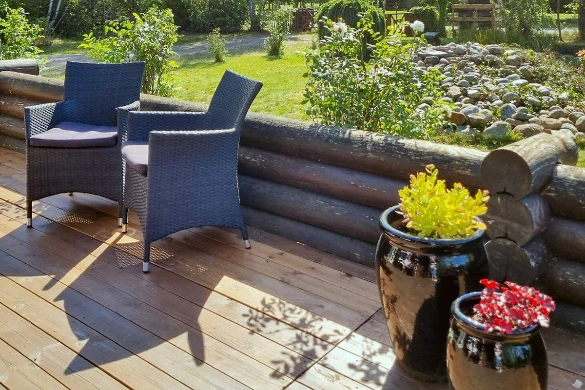 Uscendo, troverete un'ampia terrazza che circonda la casa, con angoli soleggiati e riparati per cenare o semplicemente rilassarsi con un libro. Il giardino ha un piccolo laghetto che aggiunge fascino e tranquillità, mentre il paesaggio circostante offre ancora più cose da scoprire. Passeggiate lungo i sentieri forestali nelle vicinanze, esplorate la tranquilla costa o approfittate delle eccellenti opportunità di pesca per cui la zona è nota. Qui, ogni giorno potrete scegliere tra avventure nella natura o ore tranquille trascorse a casa. Nota bene: la proprietà non viene affittata a gruppi di giovani.