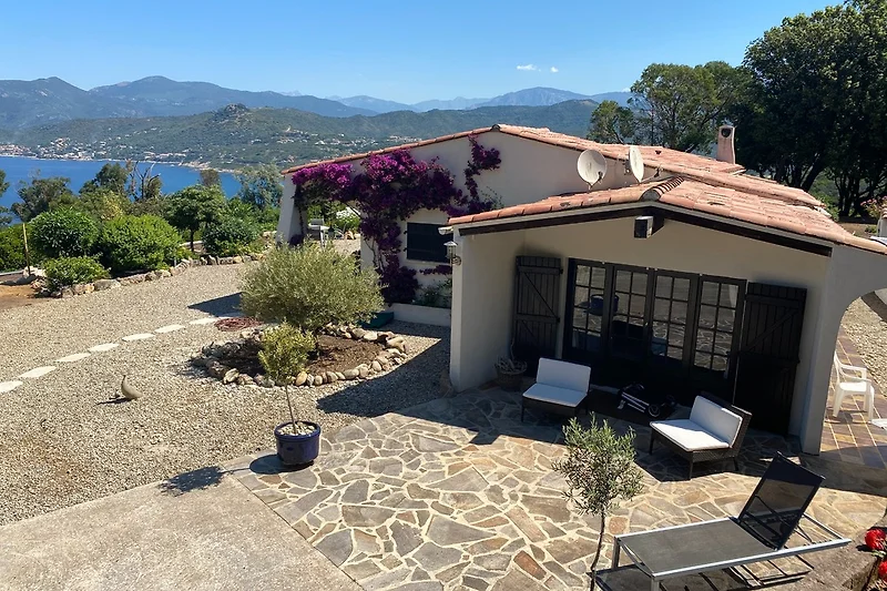 La villa si trova in una delle più belle baie della Corsica, il Golf de Sagone, sulla costa occidentale della Corsica, 20 km a nord della capitale Ajaccio. Il villaggio più vicino, Tiuccia, è a 1,5 km. Per le vostre necessità quotidiane, troverete qui vari negozi, come una panetteria, l'ufficio postale, una farmacia e un piccolo negozio di alimentari. Ci sono grandi supermercati a Sagone o Ajaccio.