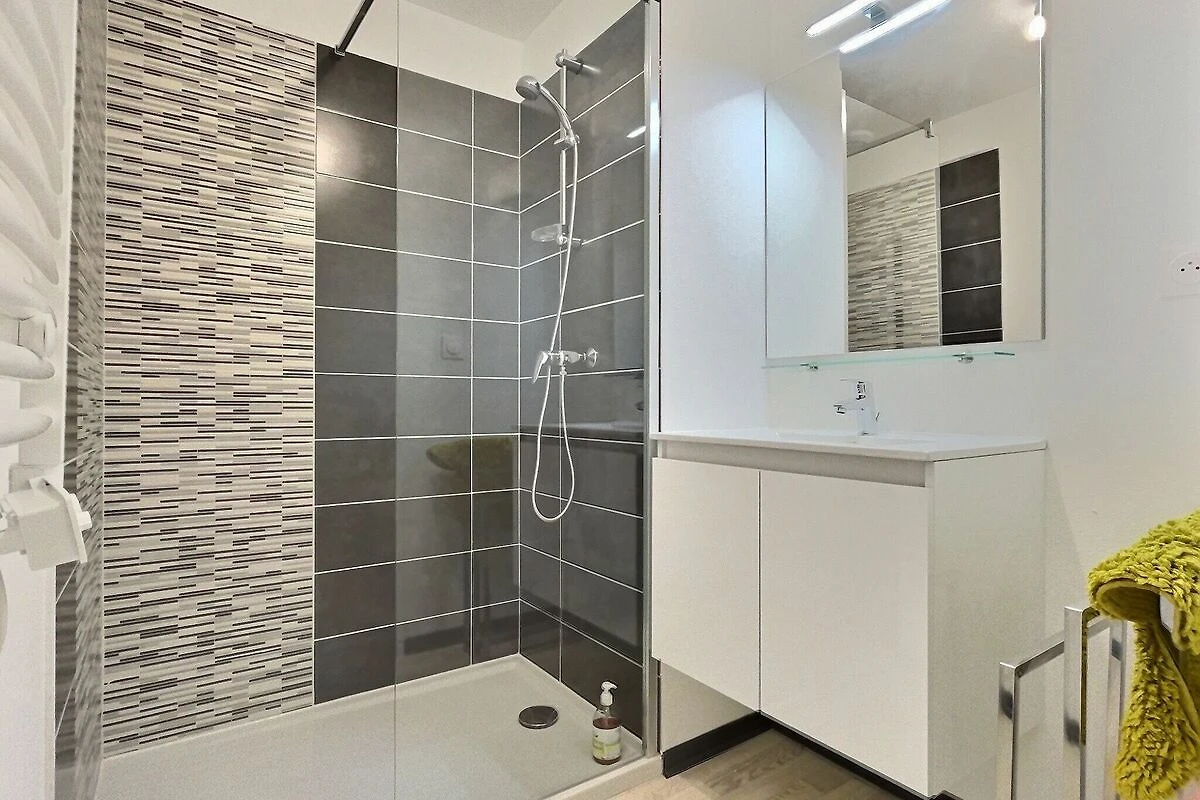 La maisonette dispone di un soggiorno arredato con aria condizionata. La cucina completamente attrezzata comprende una lavastoviglie e una macchina da caffè elettrica. La maisonette dispone di tre camere da letto (una o due con letto matrimoniale e una o due con letto a castello o due letti singoli), due bagni con doccia e WC (separati). Diverse camere si trovano al primo piano.