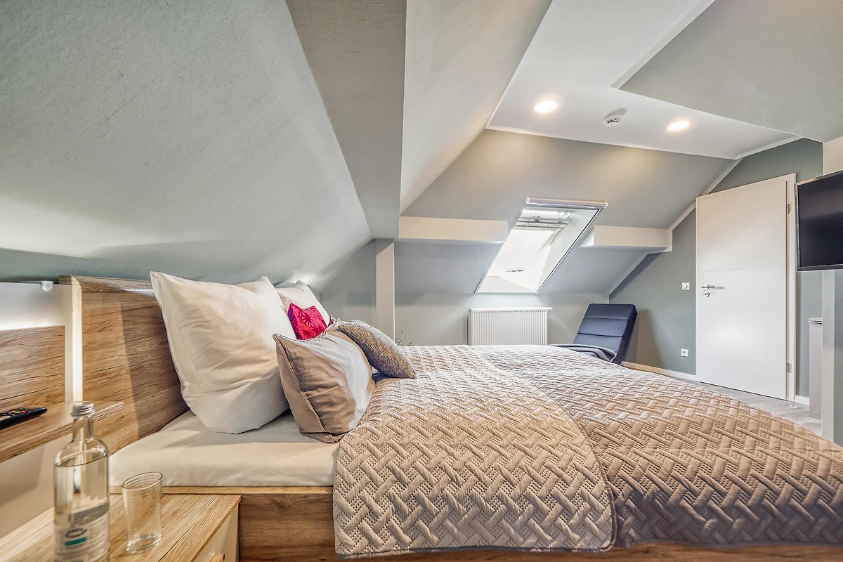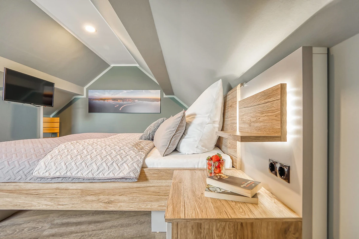 Possiamo solo raccomandare questo appartamento! Il nostro soggiorno è stato semplicemente fantastico. La spaziosa mansarda ha offerto alla nostra famiglia molto spazio ed era perfetta per giornate rilassanti. L'area soggiorno con camino e il comodo divano invitavano a serate insieme, mentre la cucina ben attrezzata ci ha reso facile cucinare. Il balcone era ideale per serate rilassanti all'aperto. La posizione è imbattibile: solo una breve passeggiata fino alla zona pedonale con ottimi ristoranti e negozi. Un grande ringraziamento all'agenzia di affitto proprio di fronte per l'eccellente servizio! Ci siamo sentiti completamente a nostro agio e non vediamo l'ora di tornare!