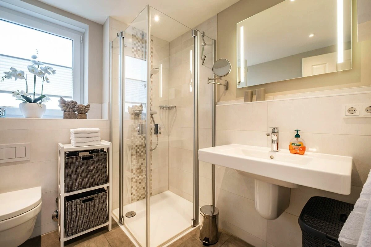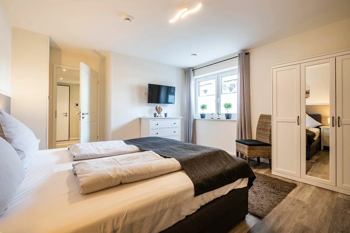 Ottima attrezzatura completa, soprattutto nella zona cucina. Arredato con gusto. Letti boxspring molto comodi. Da sottolineare la presenza di un bagno per gli ospiti. L'appartamento stesso è tranquillo. Nessun disturbo acustico, anche se situato direttamente al piano terra accanto alla porta d'ingresso. Un vero vantaggio per i pedoni verso la diga o in città è l'accesso separato sul retro della casa. Si è così in breve tempo all'inizio della "strada dei ristoranti" in Hohenzollernstraße.