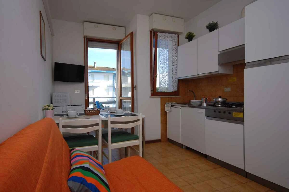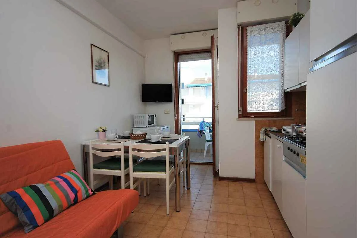 Lift. Soggiorno/camera da letto con 2 letti aggiuntivi su divano letto doppio, TV, zona pranzo (4 posti) e accesso al balcone. Camera da letto con 1 letto matrimoniale, 1 culla e La culla può essere prenotata facoltativamente a pagamento. La cucinetta con stufa a gas (4 fiamme), frigorifero e caffettiera. Bagno con doccia, 1 lavandino, WC e bidet.