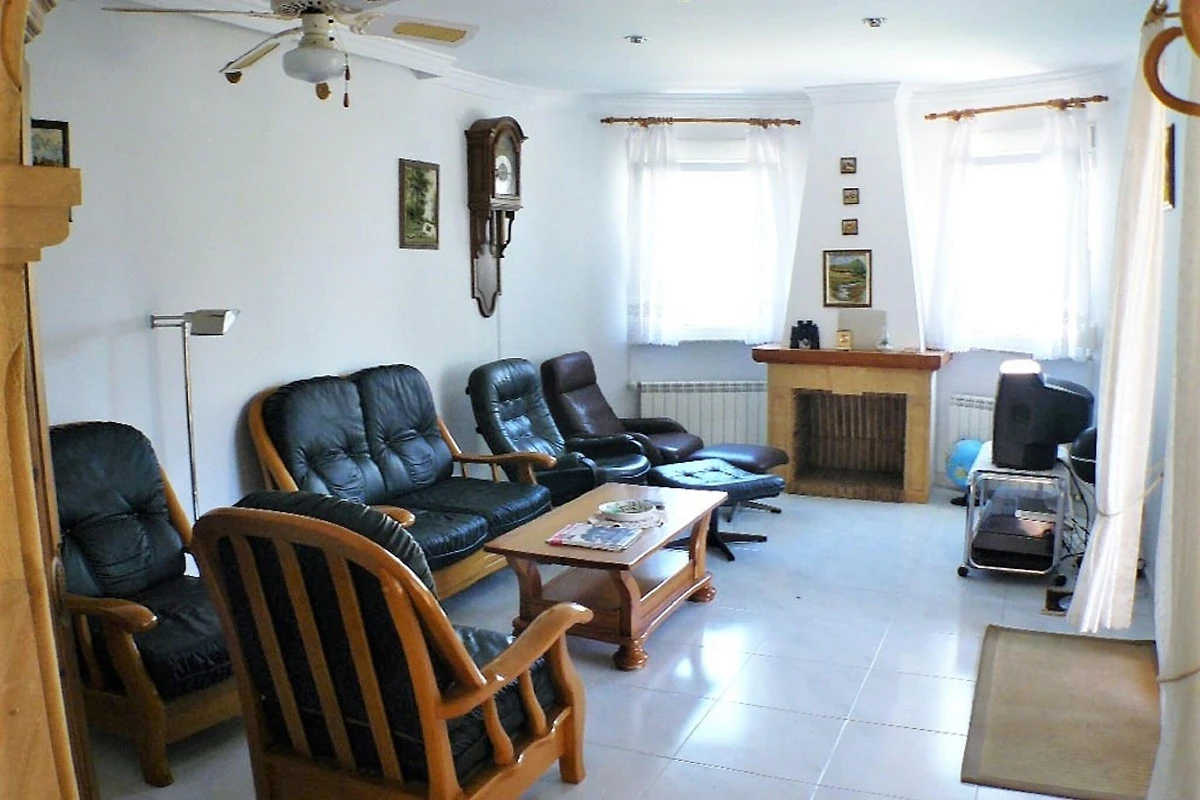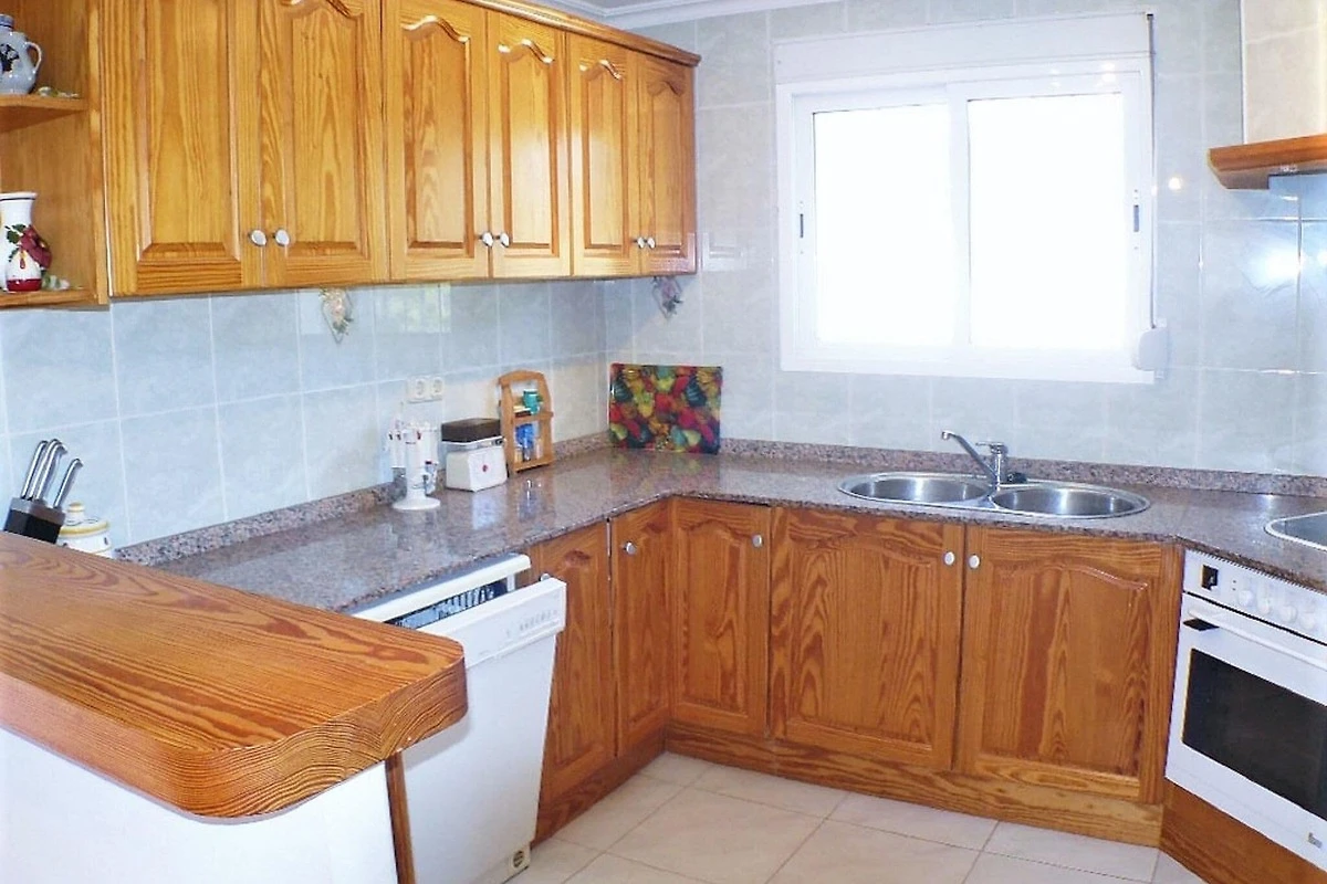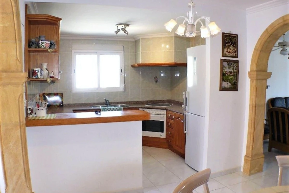 La casa dispone di un luminoso soggiorno con zona pranzo e TV e di una cucina completamente attrezzata con elettrodomestici moderni, tra cui uno spremiagrumi, un frullatore e un frullatore a immersione. Due bagni con vasca o doccia, una camera matrimoniale e una camera con due letti singoli garantiscono il comfort di tutti gli ospiti. All'esterno, un giardino privato e una piscina invitano a rilassarsi sotto il sole della Costa Blanca, rendendola un rifugio perfetto tutto l'anno.