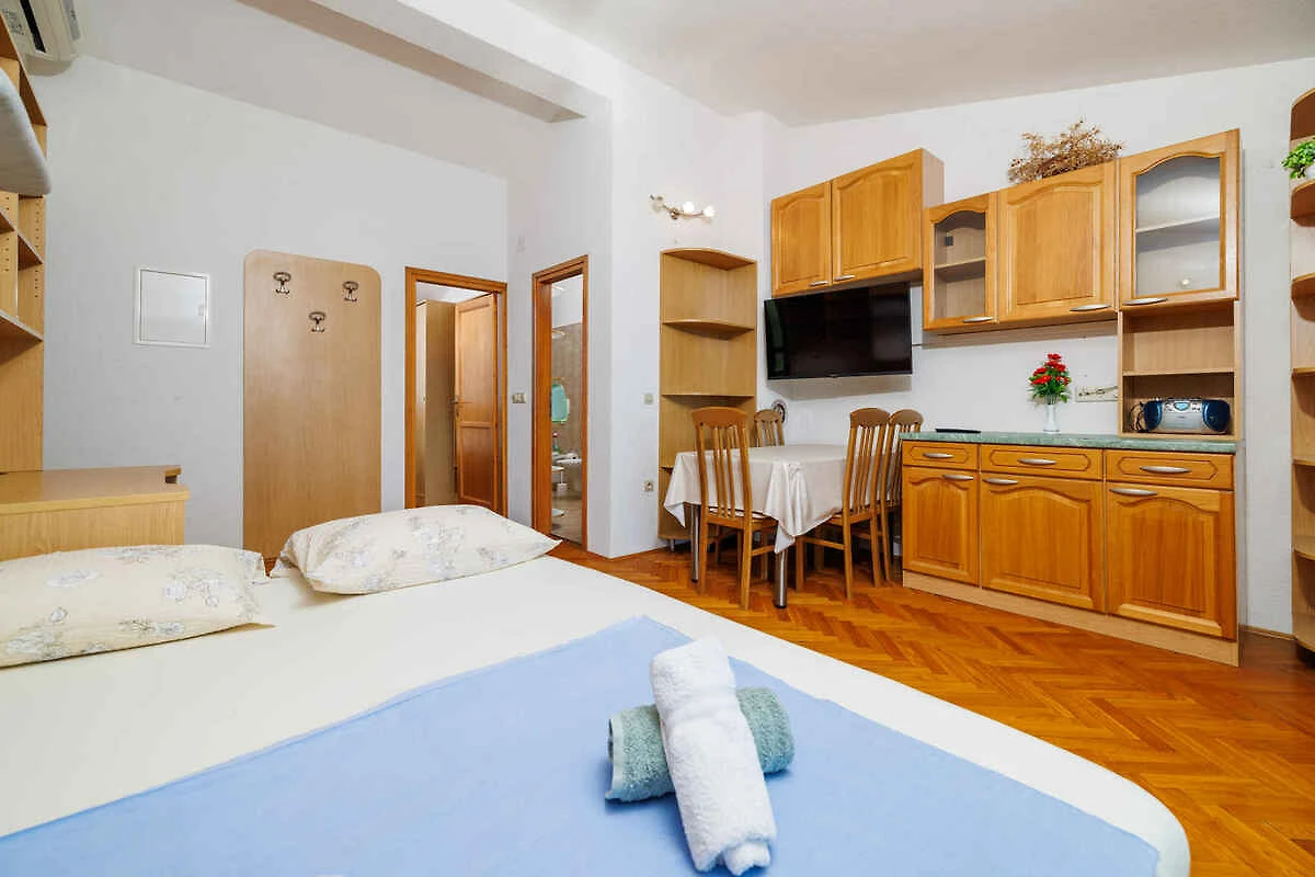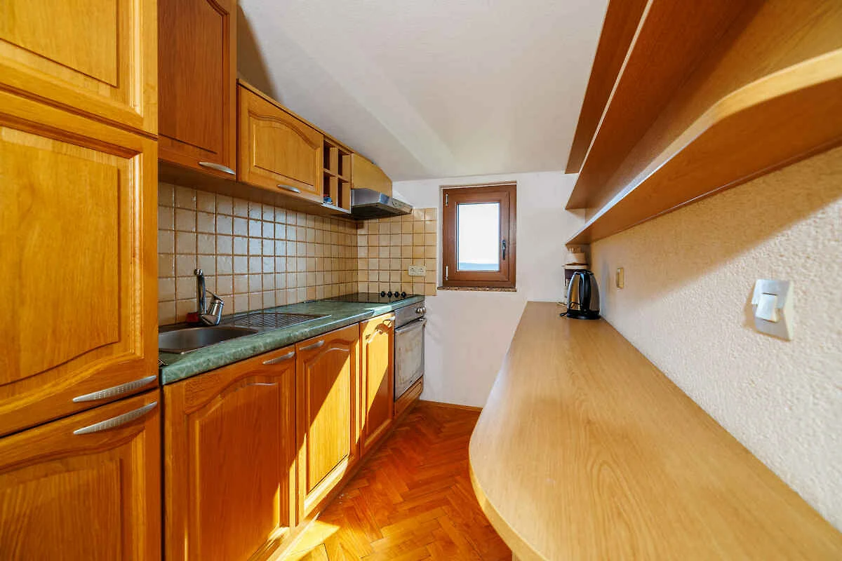 L' appartamento vacanze si trova in una casa unifamiliare, indipendente ed è arredato funzionale e in stile tradizionale. La proprietà si trova in periferia. Anche a causa della vista dalla struttura sul mare e tranquilla e soleggiata pendenza, il domicilio è popolare. Attrezzature in comune: prato per prendere il sole, ombrellone, lettino da sole, possibilità di grigliare, terrazza e mobili da giardino.