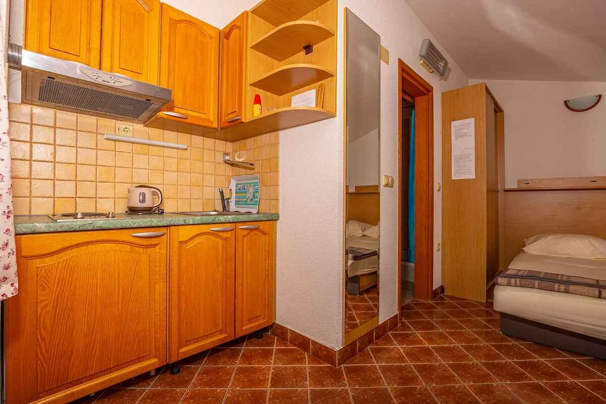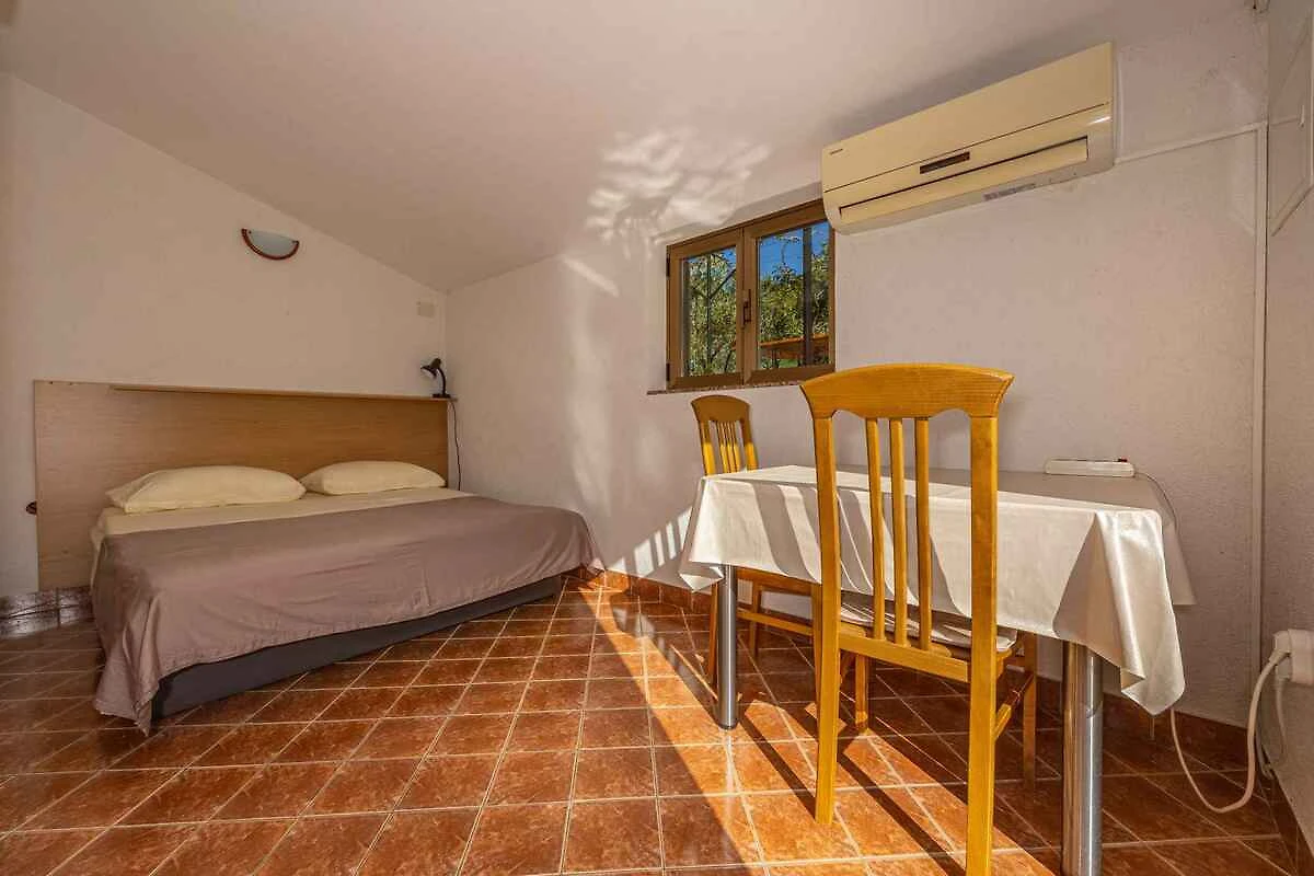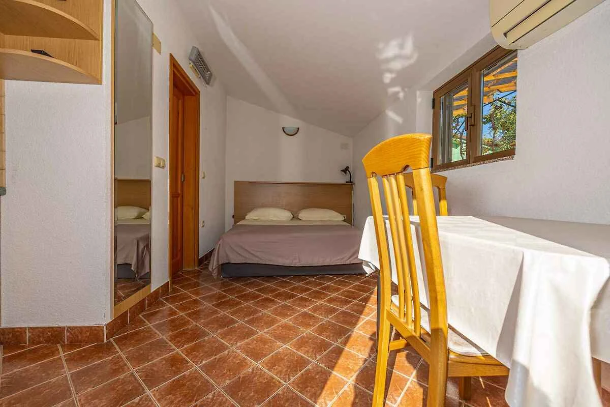 Lo studio si trova in una casa unifamiliare, indipendente ed è arredato funzionale e in stile tradizionale. La proprietà si trova in periferia. Anche a causa della vista dalla struttura sul mare e tranquilla e soleggiata pendenza, il domicilio è popolare. Attrezzature in comune: prato per prendere il sole, ombrellone, lettino da sole, possibilità di grigliare e terrazza.