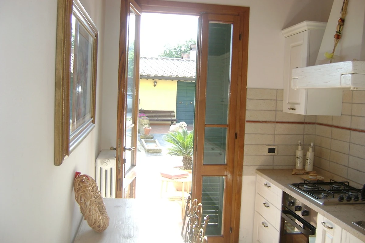 Dalla terrazza arredata e dal giardino immerso nel verde si gode della splendida vista del dolce paesaggio collinare di Cerreto Guidi. L'appartamento offre agli ospiti un letto matrimoniale nella galleria e un grande divano letto al piano inferiore, un bagno con doccia e servizi igienici e un'ampia cucina abitabile con zona pranzo.