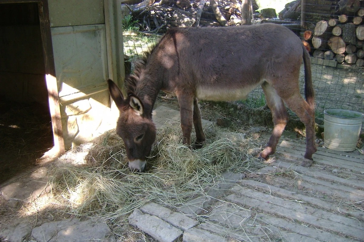 La fattoria ospita molti animali come un asino, alcune capre, galline, un'oca grigia, un tacchino e una tartaruga.