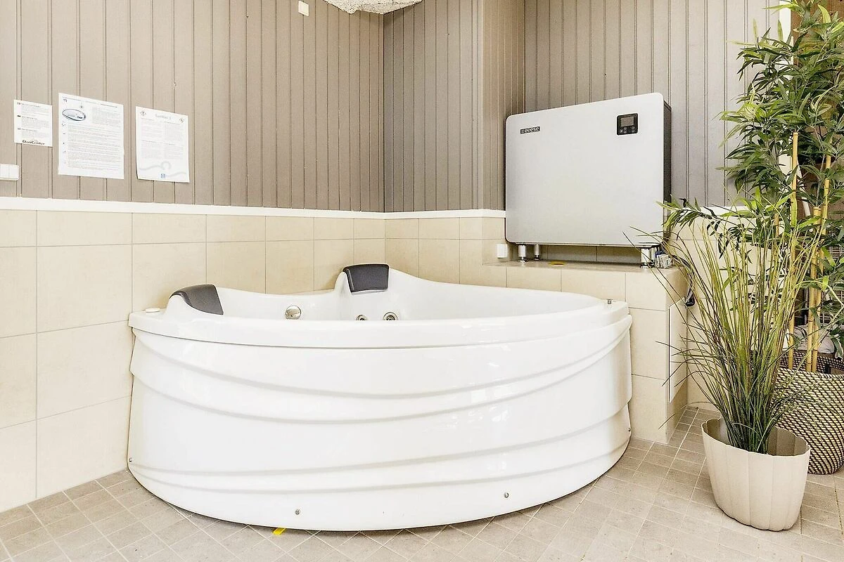 L'area piscina comprende una vasca idromassaggio per 2 persone con riscaldatore per un riscaldamento rapido e una piscina. La temperatura dell'acqua è compresa tra 24 e 28 °C. Dal bagno è possibile accedere anche a una sauna per 4-5 persone.