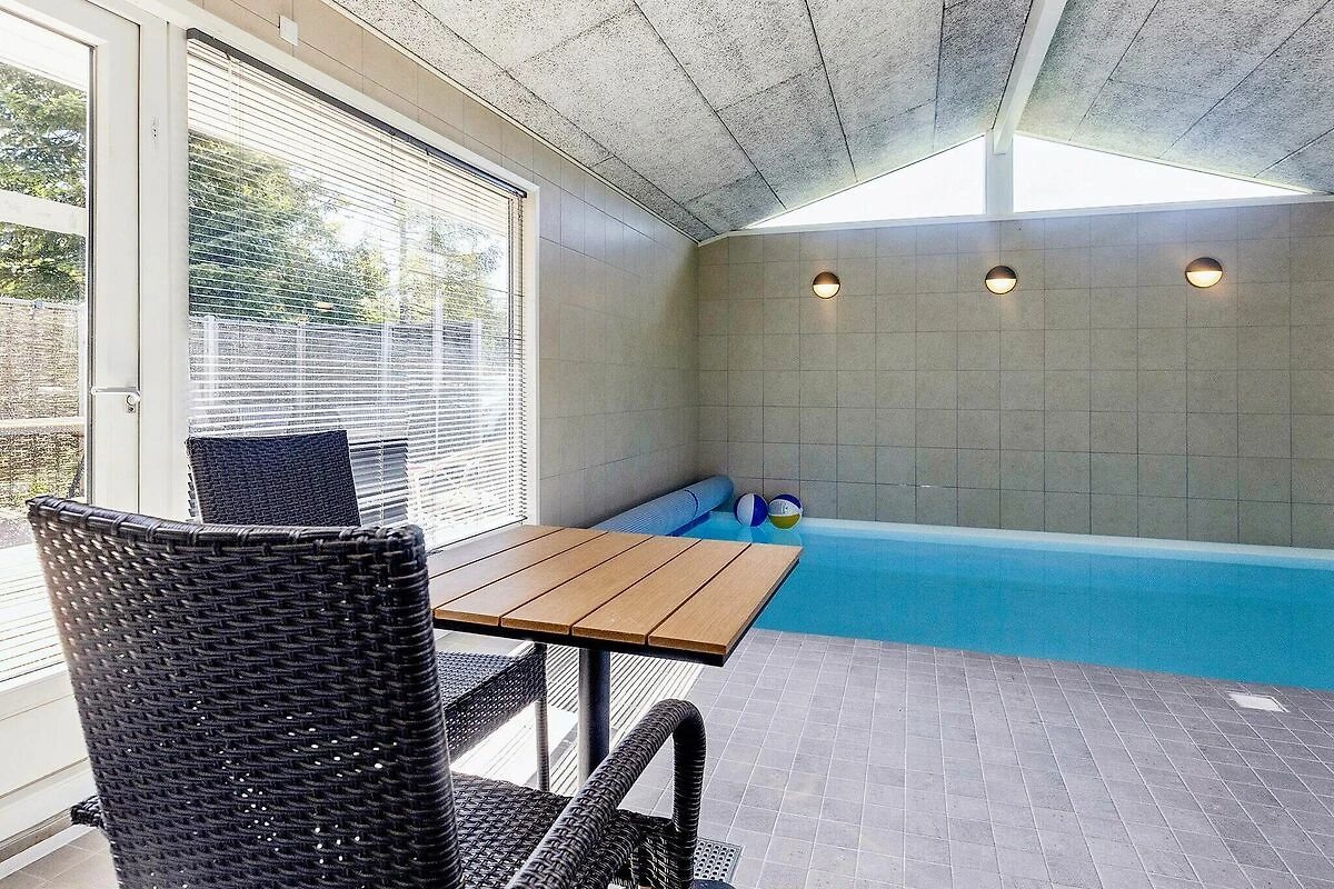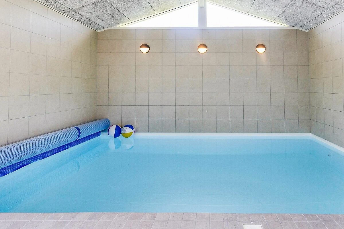 , Soggiorno(2x letto pieghevole (1 pers.)), Cucina separata(mobile cucina(2 fuochi), cappa aspirante, caffettiera, forno, forno a microonde, lavastoviglie, congelatore(60-99L), frigo con congelatore), Soggiorno/camera da letto(TV(canali TV danesi), seggiolone), Camera da letto(letto matrimoniale), Camera da letto(letto matrimoniale), Camera da letto(letto singolo, 2x letto a castello), Bagno(sotto pavimento)(asciugabiancheria, lavabo, doccia, WC, lavatrice), Bagno(sotto pavimento)(lavabo, doccia, WC), vasca idromassaggio(all’interno, riscaldata, 2 persone), sauna(all’interno, 4 persone), riscaldamento(elettrico), terrazza, mobili da giardino, lettini prendisole, piscina(all’interno), giochi per bambini, freccette, rete per gioco calcio, termopompa aria-aria, termopompa aria-acqua, stazione di gioco