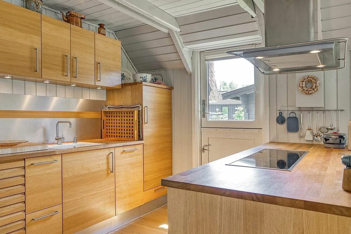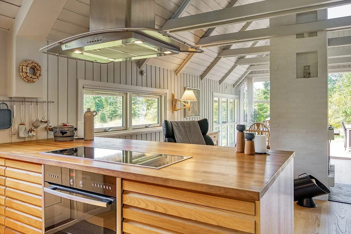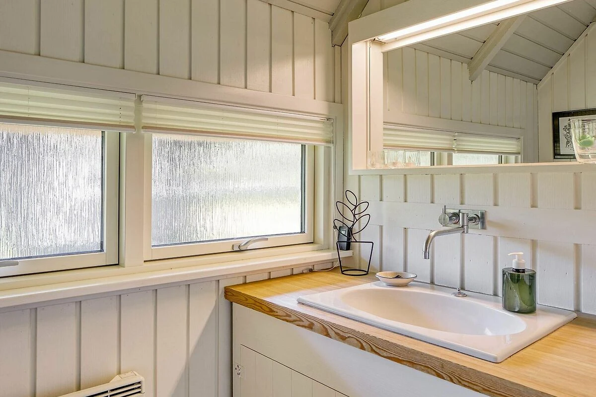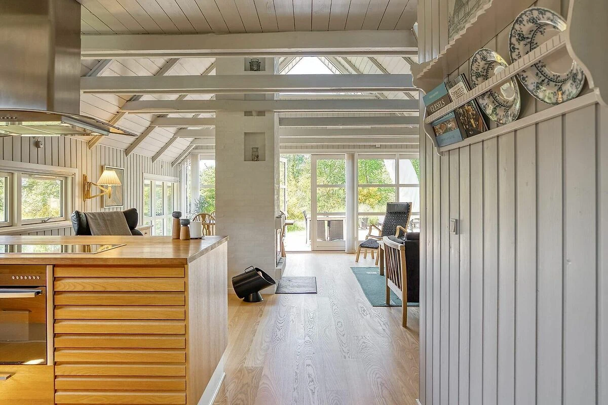 Questo cottage con tetto di paglia si trova su un ampio terreno naturale a Marielyst. La casa è arredata in stile moderno con una cucina a vista con piano cottura a legna e vetroceramica, cappa aspirante e lavastoviglie. Il forno è multifunzione, sia come forno tradizionale che come microonde. La casa è dotata di una pompa di calore aria/aria con funzione di raffreddamento.