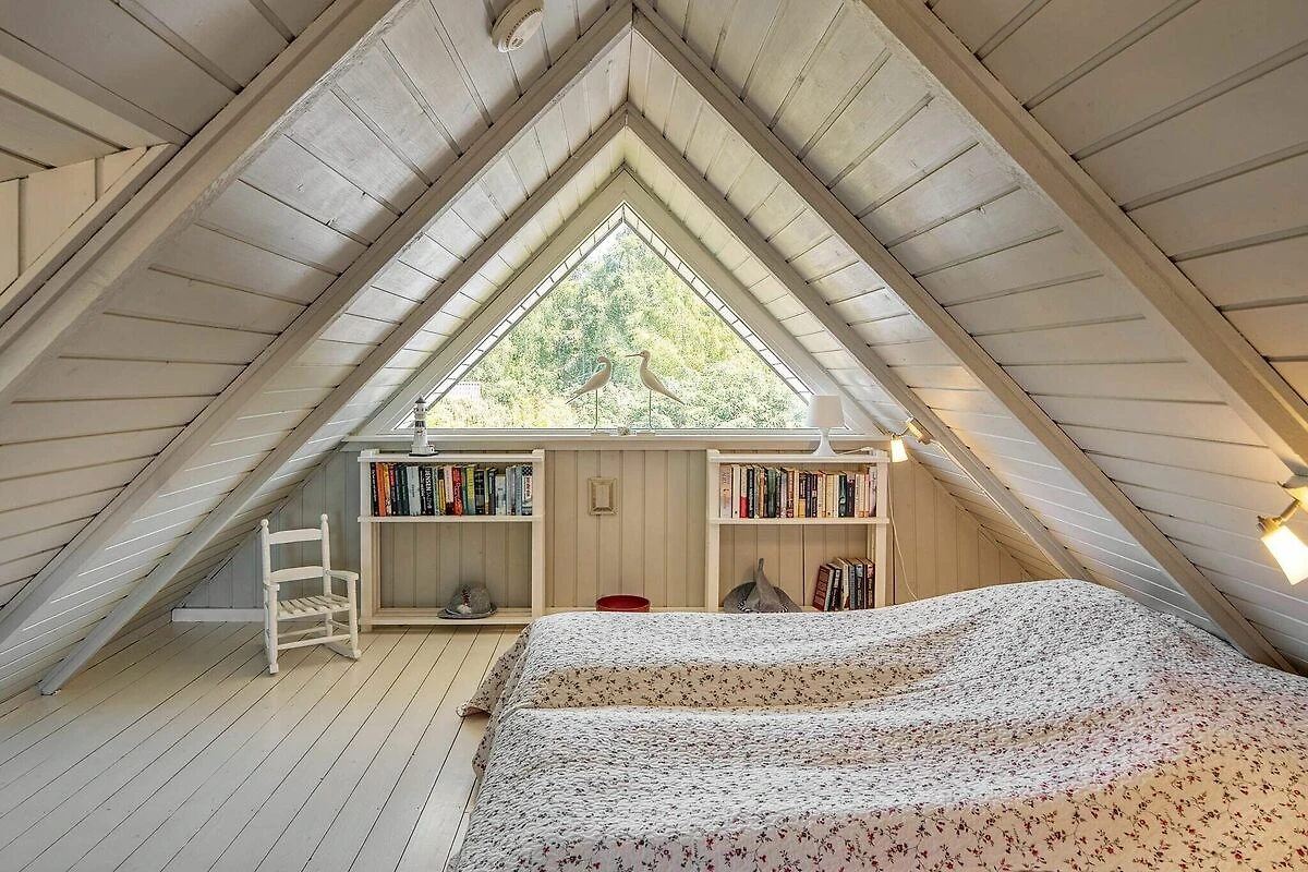 Dal soggiorno, una piccola scala conduce al soppalco, molto spazioso e con un'ottima altezza. Qui troverete un letto matrimoniale e una vista sulla natura che circonda la casa.
