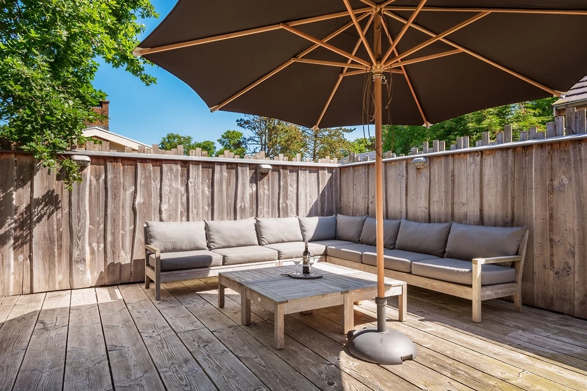 L'ampio giardino offre molta privacy e dispone di una cucina all'aperto, di un tavolo da pranzo per 8 persone, di un barbecue Weber e di una bella zona salotto con ombrellone dove è possibile divertirsi fino a tarda notte.