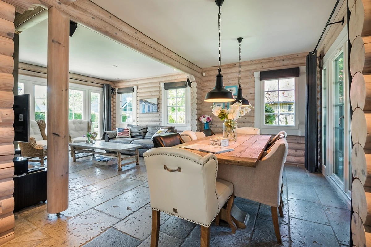 Il bellissimo soggiorno dispone di un'ampia zona salotto con TV, stereo, camino e un grande tavolo da pranzo per 8 persone. La lussuosa cucina è perfetta per preparare una cena sontuosa.