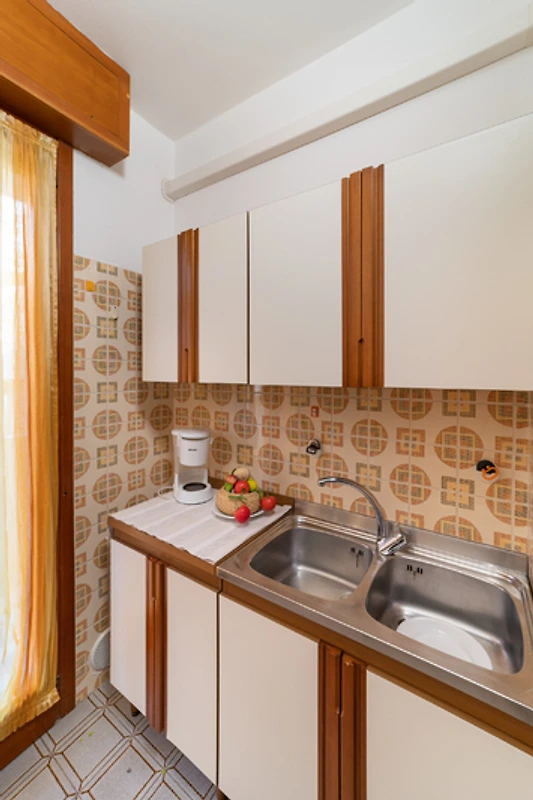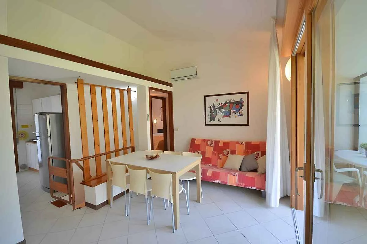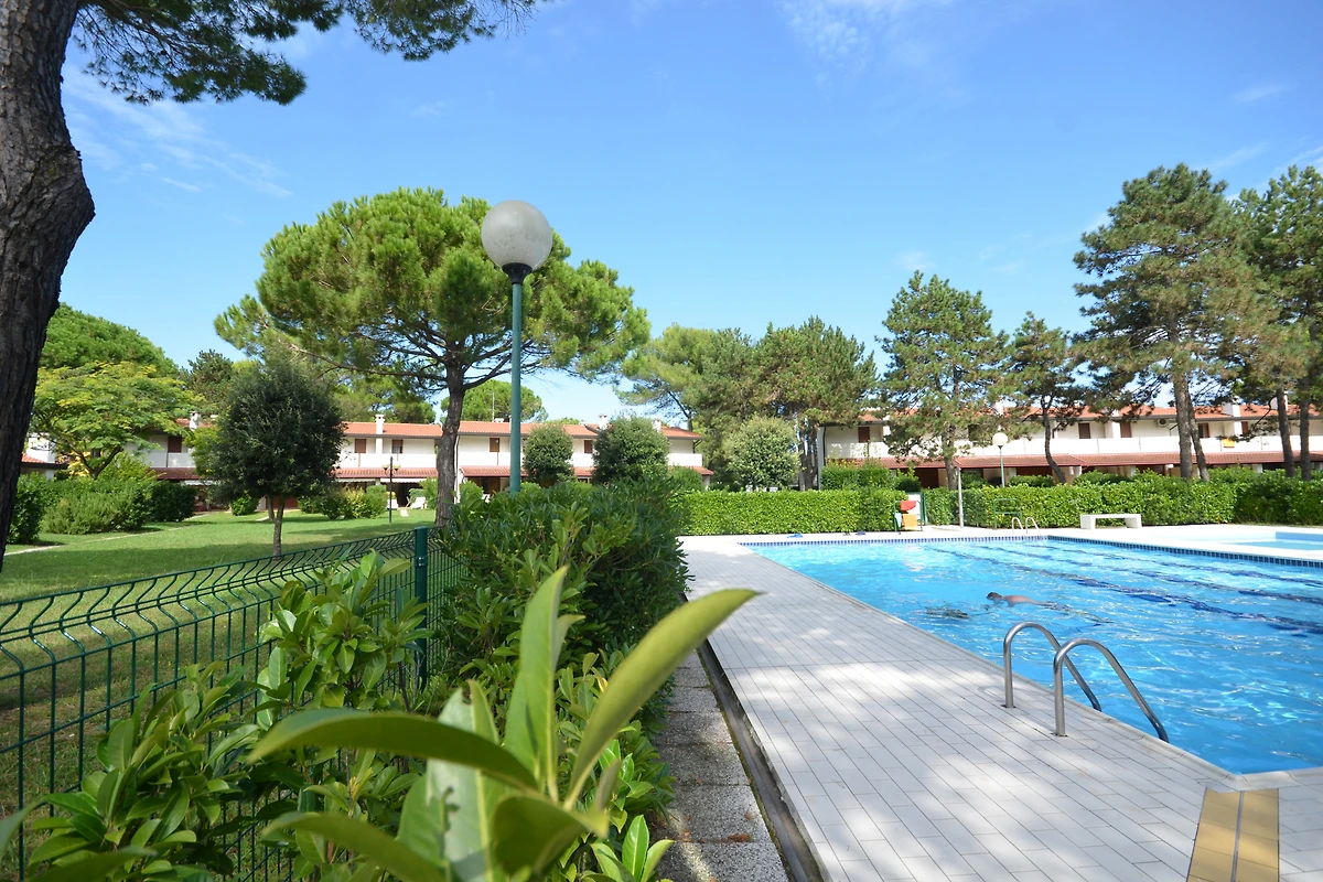 Bibione, frazione Lido dei Pini. L' appartamento vacanze si trova in un villaggio turistico, in una trama del giardino. Parcheggio in garage e sulla proprietà.