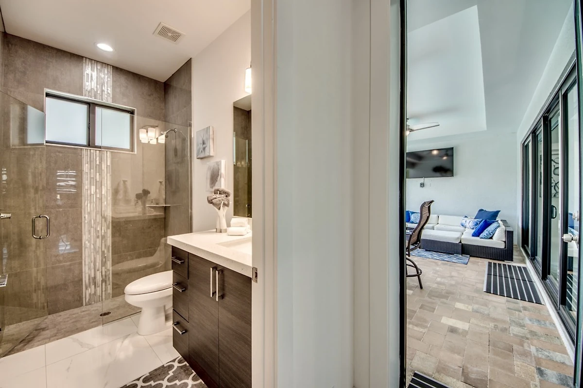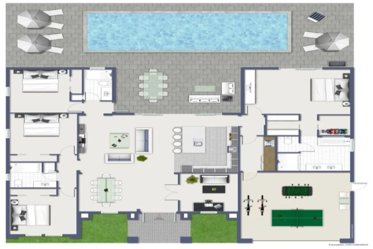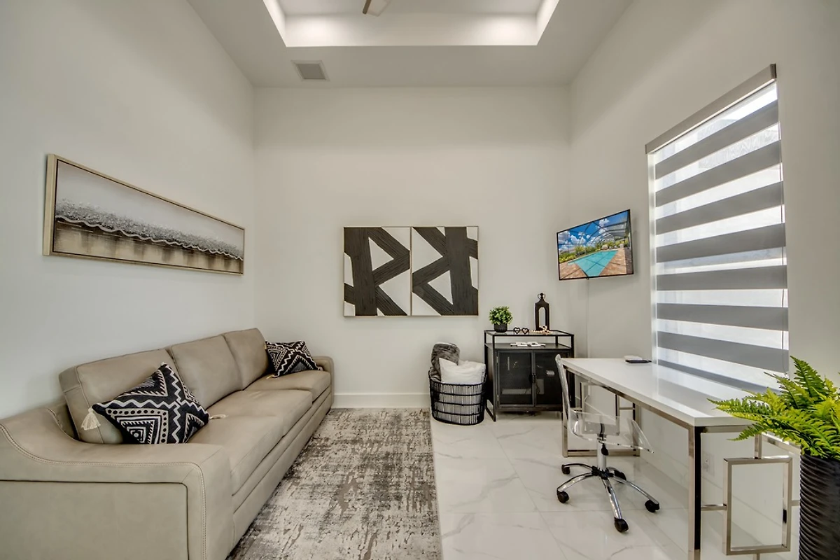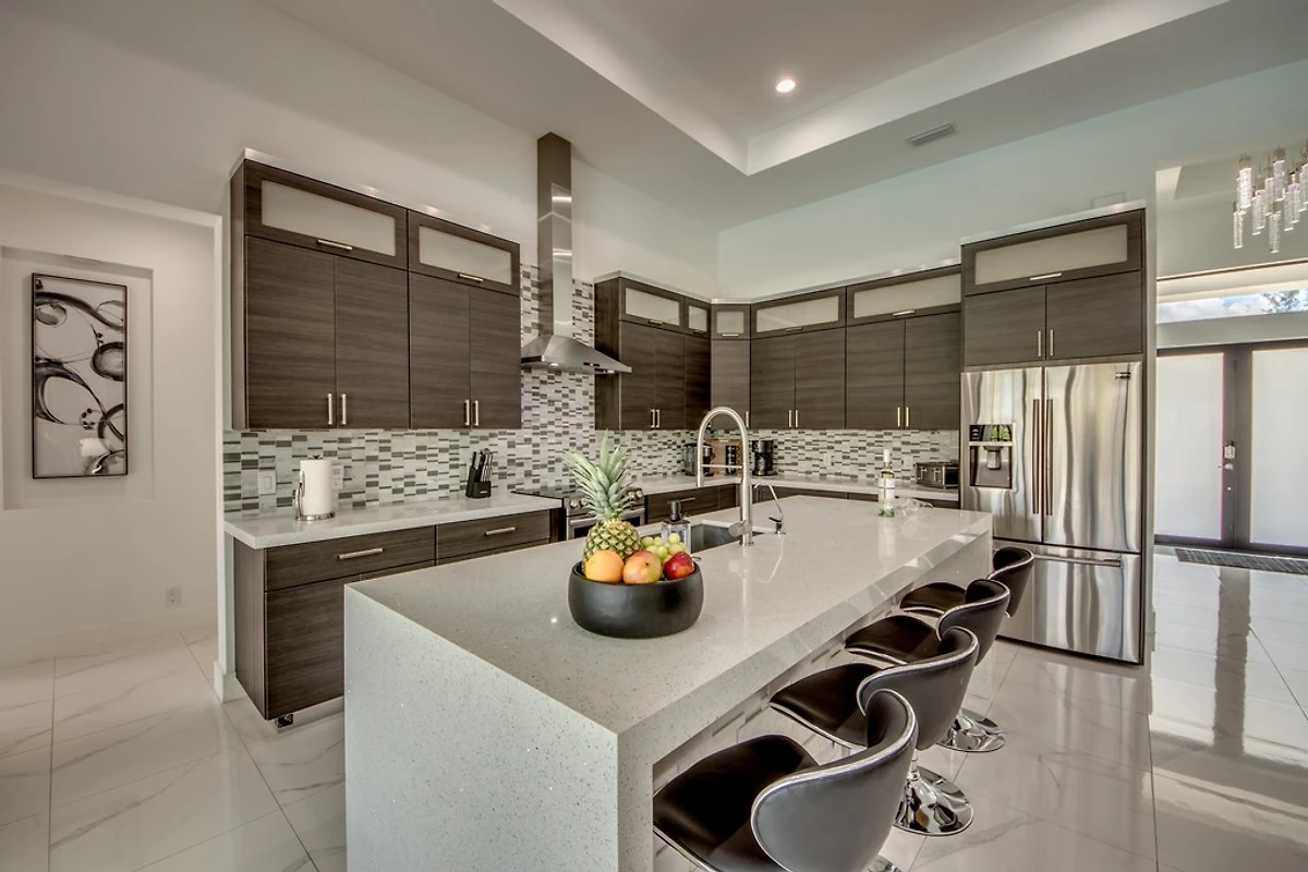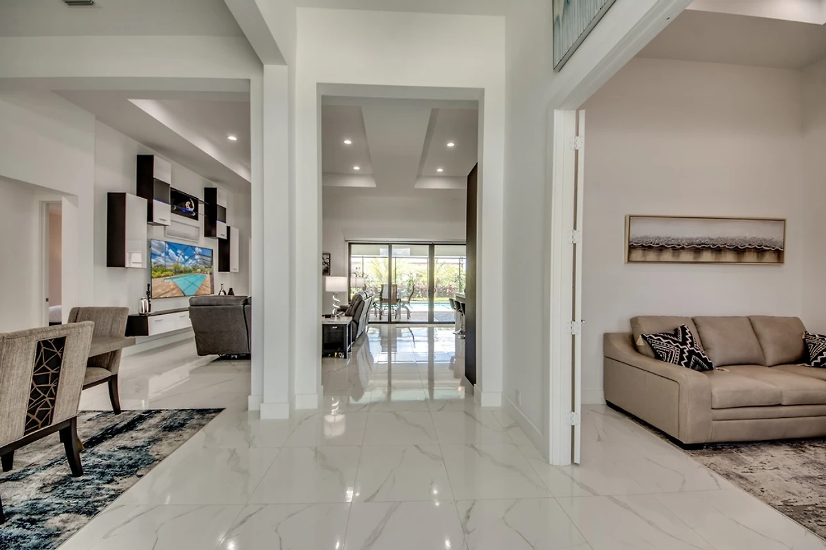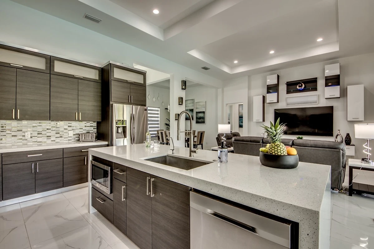 Il nome dice tutto: qui troverete il vostro personale e moderno paradiso di vacanza e puro relax. Appena entrati nella villa, sarete colpiti dall'eccezionale arredamento e dalle finiture. Il soggiorno e la zona pranzo offrono spazio sufficiente per tutti. Cucinare e mangiare insieme è particolarmente divertente nell'elegante cucina di alta qualità. È completamente attrezzata per non far mancare nulla quando si cucina insieme. Le grandi porte scorrevoli in vetro permettono alla zona giorno di aprirsi sulla lanai.