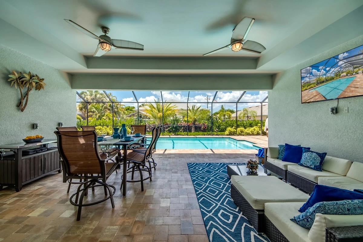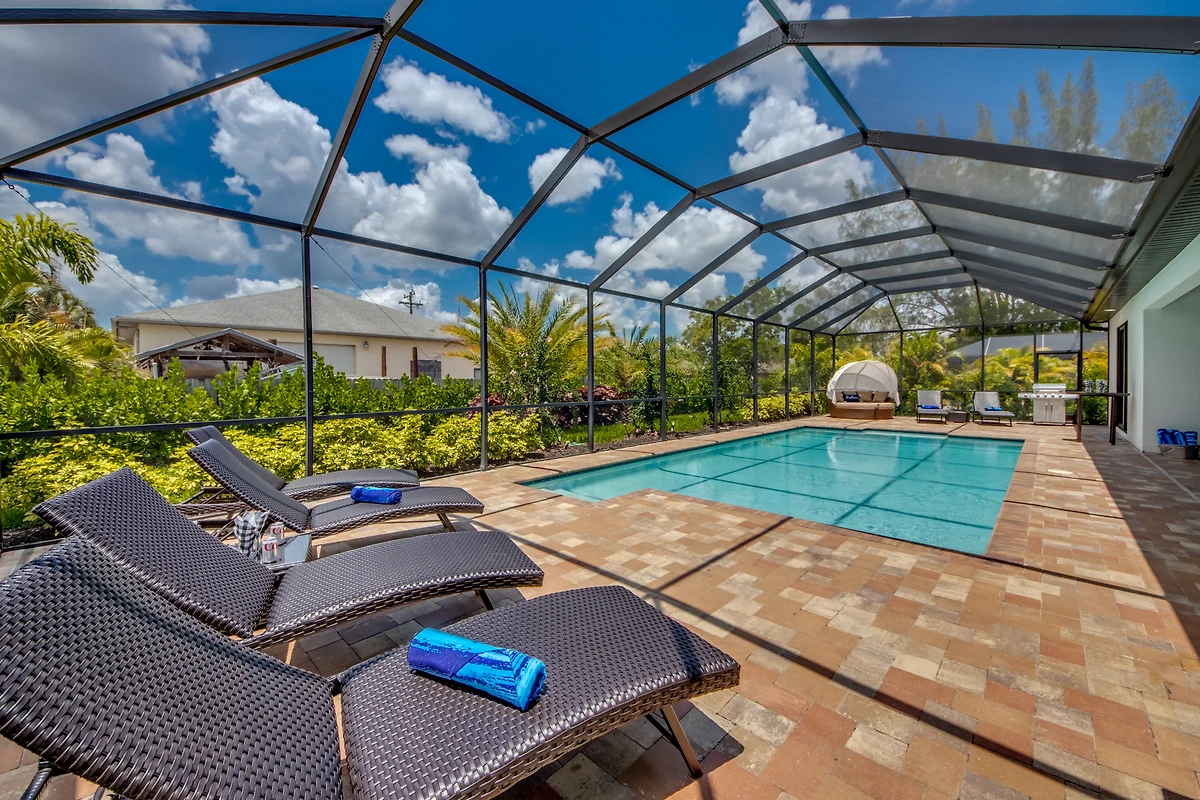 Cape Coral è conosciuta come la Venezia d'America per i suoi innumerevoli canali. Dall'aeroporto di Fort Myers circa 40 minuti e da Tampa 2,5 ore per raggiungere la casa. a 3 ore da Orlando con i suoi numerosi parchi come Sea World, Adventure Island o Universal Studios. 1 ora a sud, via Naples, per le Everglades. Cape Coral ha la sua piccola spiaggia con Yacht Club. La più famosa, Fort Myers Beach, si trova a 35 minuti di distanza. Nella zona sono presenti numerose strutture commerciali. Il supermercato più vicino e altri negozi sono a 5 minuti di auto. Grande centro commerciale e outlet a 20 minuti. Il parco acquatico Sun Splash si trova nelle immediate vicinanze. Cape Coral si trova tra le splendide isole di Captiva, Sanibel e Pine Island. Scoprite le spiagge di sabbia bianca simili a quelle dei Caraibi.