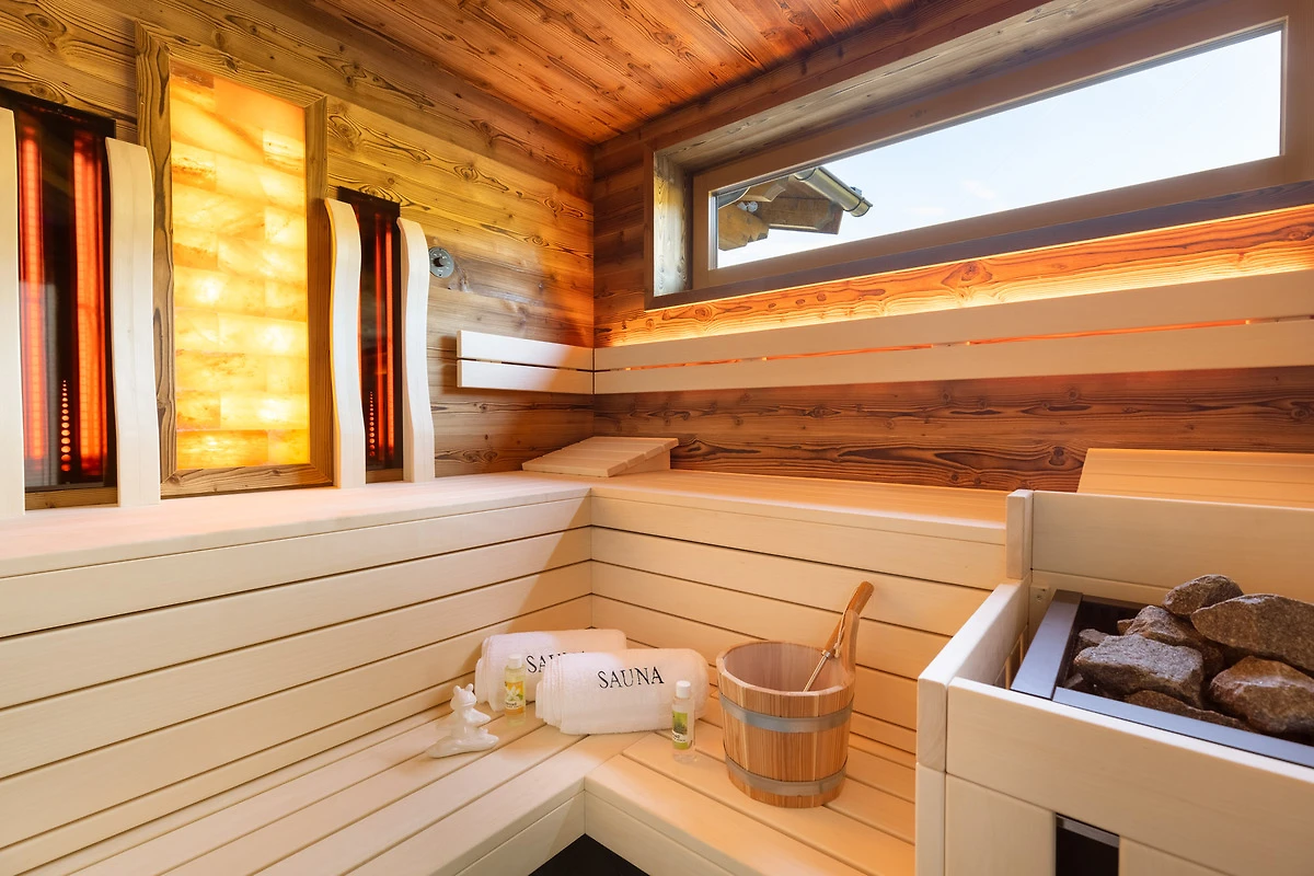 Il punto forte: la nostra area benessere privata con sauna combinata. Scegliete tra sauna finlandese, biosauna o infrarossi e godetevi la vista panoramica sul Dachstein – vacanza benessere nelle Alpi allo stato puro.