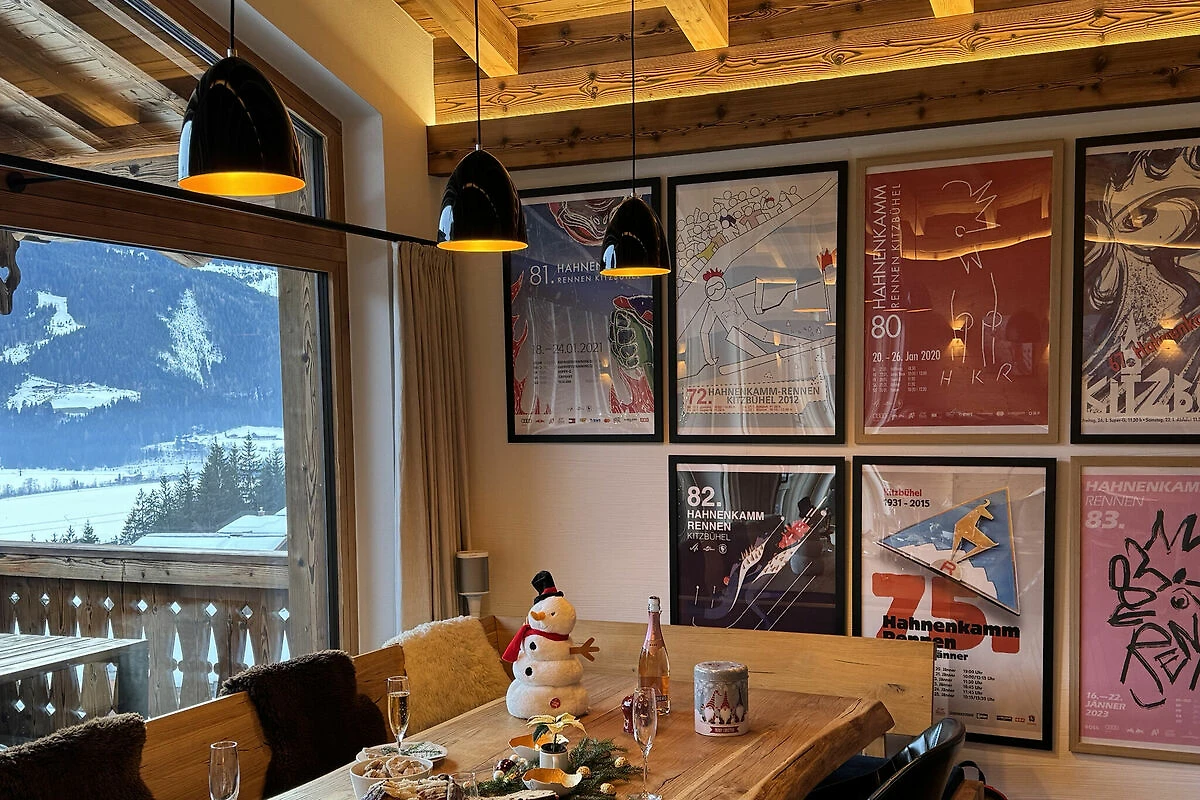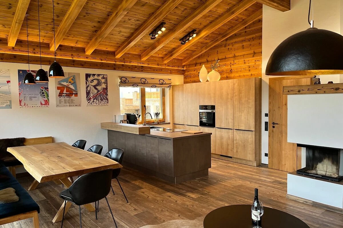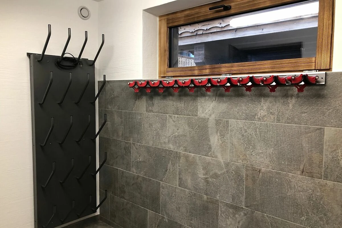 Oltre a una cucina con piano cottura a induzione e lavastoviglie, lo chalet dispone anche di smart TV in tutte le stanze, sistema SONOS in soggiorno, riscaldamento elettrico, camino (legna inclusa) e griglia a carbone. C'è anche una sauna con vista panoramica, una sala fitness, una sala giochi, un deposito sci con asciuga scarponi e due posti auto coperti per le auto. Le auto elettriche possono essere ricaricate lentamente alla "presa Schuko" nel posto auto coperto.