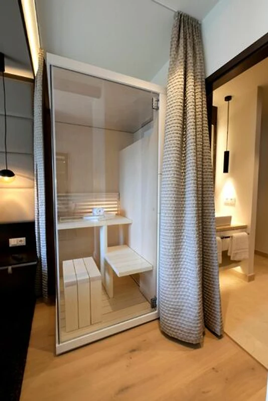 Il design stilizzato è una questione di gusto. Un po' troppo design e meno praticità, come ripiani in bagno/spazio per camicie e calzini nell'armadio... La mini sauna è effettivamente molto utile. Ottimo balcone esposto a sud, purtroppo senza protezione solare, ad esempio per leggere. Il paese stesso non ci è piaciuto molto. Ad esempio, Travemünde/Lübeck ecc. offrono molte cose interessanti.