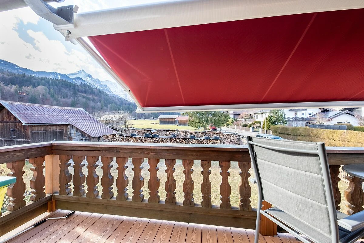 "Groaße Waxlstoa" - Ferienwohnung: Tolle Ferienwohnung mit unglaublichen Blick u.a auf die Zugspitze. Gleich zwei Balkone, einer davon überdacht, der andere mit Markise. Komplett eingerichtete Küche, gemütliches Wohnzimmer, etwas kleines Bad/Dusche (aber es reicht allemal für den Urlaub)! FeWo liegt einer schön ruhigen Gegend und hat zudem noch ausgesprochen nette Vermieter/ Eigentümer die unten wohnen. Die Anmietung und Betreuung durch die Vermittlungsagentur Mahr war schlichtweg super und wir werden wieder hier buchen! Vielen Dank für den schönen Urlaub in dieser sehr schönen Ferienwohnung!