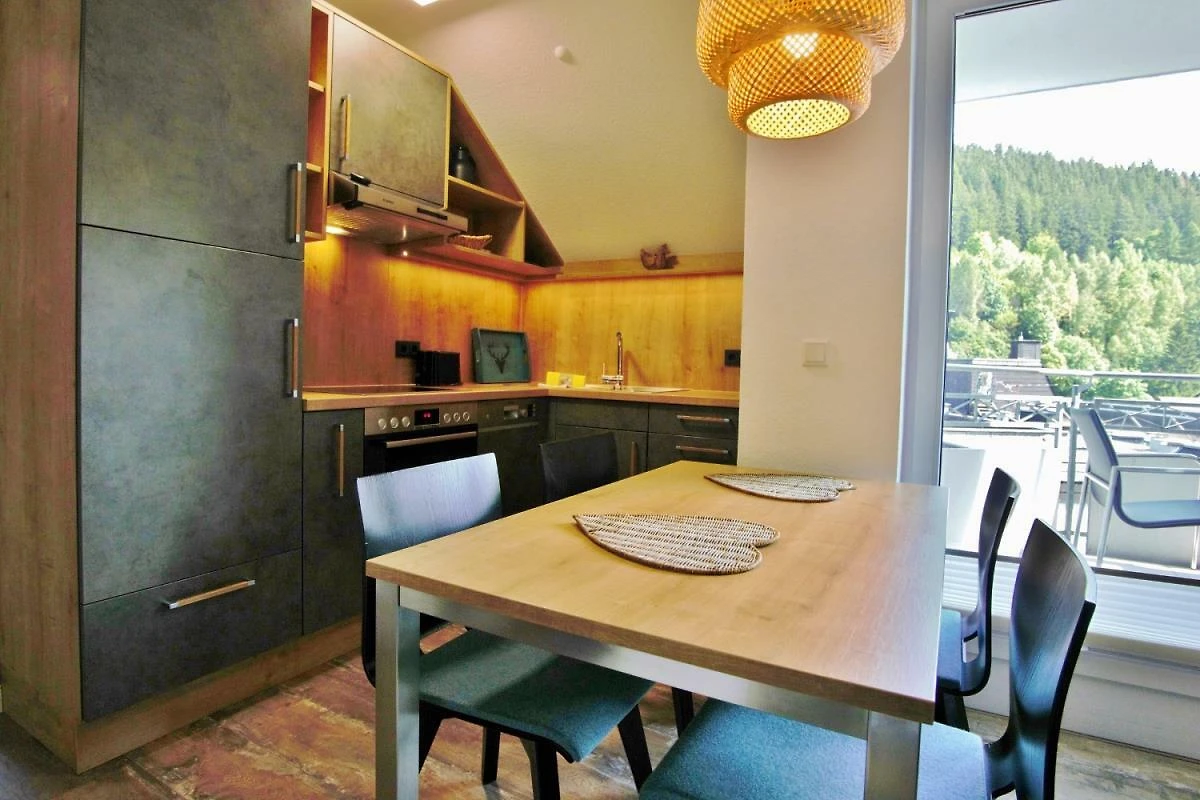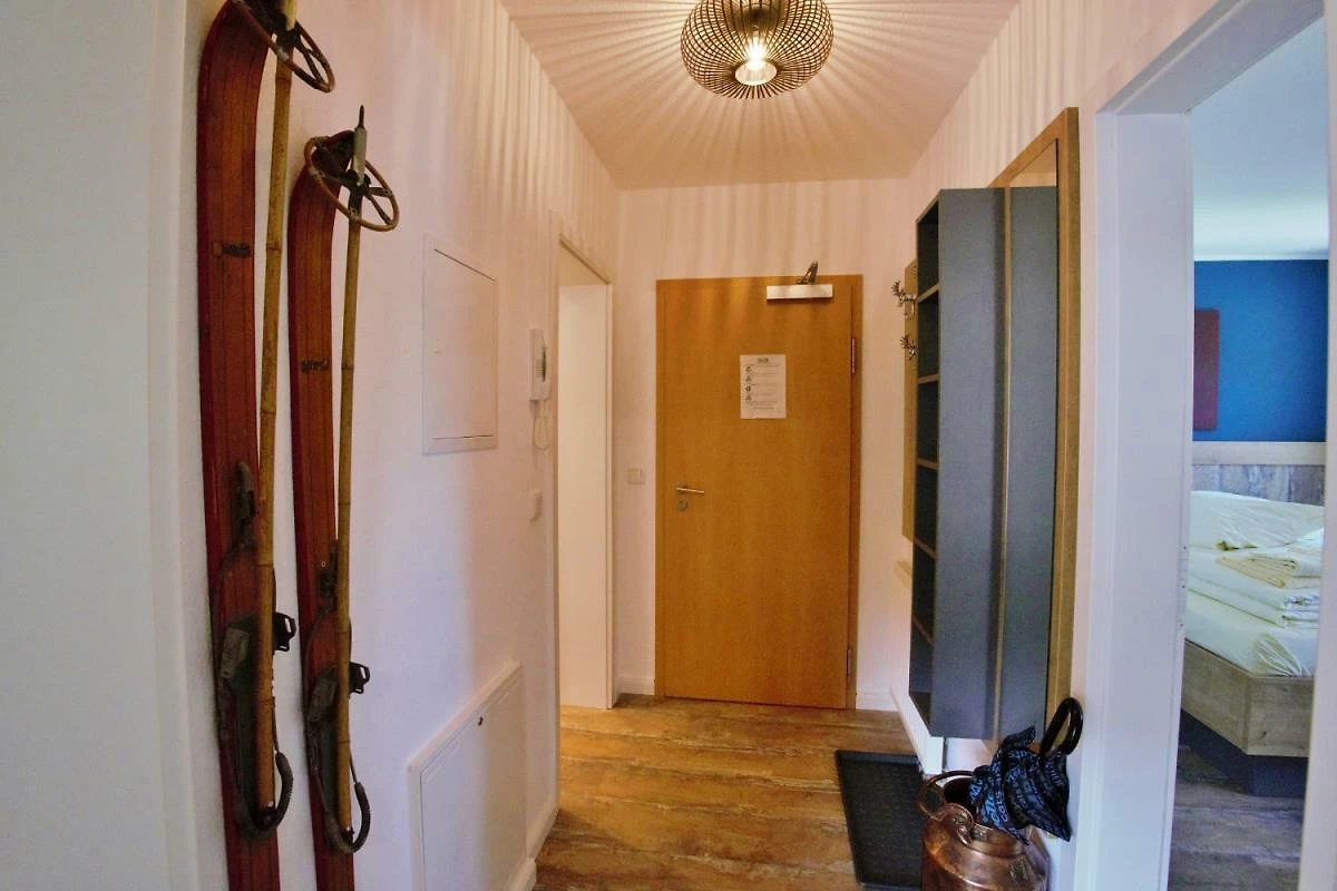 - Balcone con zona salotto, grill elettrico e vista sul trampolino di lancio di Ohrenberg - Cucina aperta con tavolo da pranzo, forno, lavastoviglie ed elettrodomestici TOP (microonde, bollitore, tostapane, macchina PAD, tostapane/ferro da stiro, frullatore e macchina per il caffè) - Una camera con letto matrimoniale, TV, armadio e scrivania - Un'altra camera con due letti singoli, tV e armadio (i letti singoli possono anche essere uniti per formare un letto matrimoniale) - Moderno bagno con doccia con scaldasalviette, specchio per il trucco e asciugacapelli - Parcheggio sotterraneo privato - Wifi gratuito La struttura dispone di una cantina per biciclette, lavatrice e asciugatrice a gettoni. a 100 metri di distanza si trovano una panetteria con caffetteria, tre ristoranti e opzioni per la colazione, nonché l'esperienza cult della gastronomia "Don Camillo" (nell'ex chiesa del paese) con balli nei fine settimana.