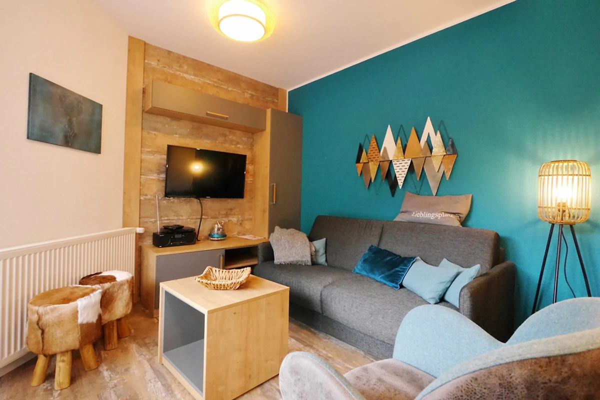 NUOVO! Disponibile dal 2023 Appartamento "Schöner Platz" (bella piazza) presso il municipio - senza barriere! Moderno appartamento a 4 stelle nel cuore di Willingen. trilocale**** per 2-4 persone con wifi. L'appartamento a 4 stelle, privo di barriere architettoniche, si trova nel cuore di Willingen, al 2° piano di un condominio con ascensore e parcheggio sotterraneo. Con brevi distanze a piedi dal centro città (100 m), questo appartamento è ideale per vacanze brevi e per famiglie che apprezzano il comfort, amano vivere al centro e vogliono raggiungere tutto a breve distanza. Grazie alla sua posizione posteriore al municipio su una collina, l'appartamento è ben schermato dalla strada principale dal municipio e dall'Hotel Central e il traffico è calmato. Nei fine settimana, tuttavia, il centro è piuttosto vivace fino a tarda sera; durante la settimana, la serata è tranquilla. L'appartamento moderno è arredato con mobili di falegnameria su misura. Dal soggiorno e dal balcone si guarda sui tetti di Alt-Willingen fino al trampolino di Ohrenberg.Disposizione e arredamento dell'appartamento:- Soggiorno con TV satellitare, SKY TV gratuito, radio internet, stereo con Bluetooth, giochi, divano.