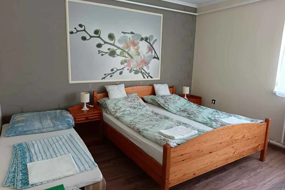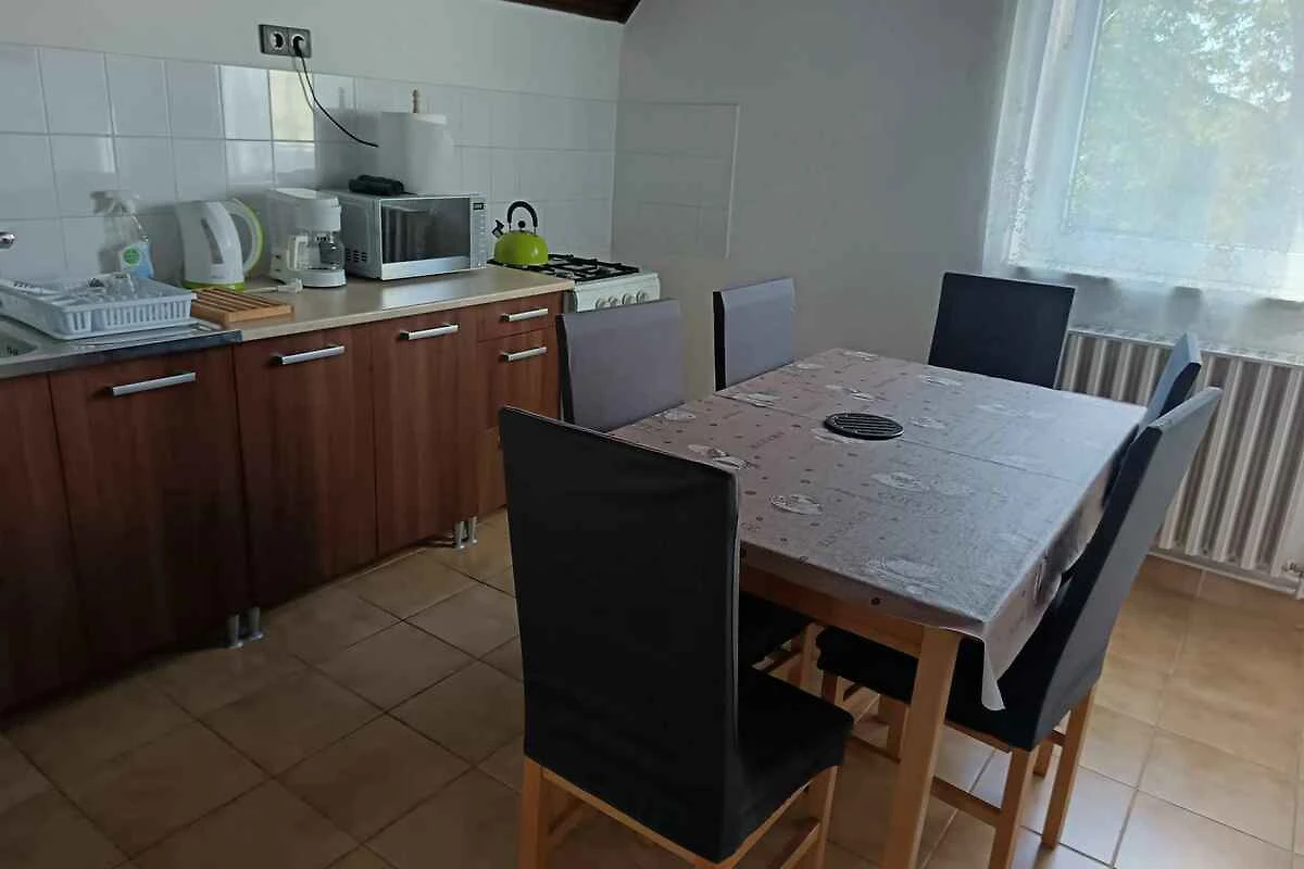 Spaziosa casa in una buona posizione, dove abbiamo tranquillamente vissuto 6 adulti e 8 bambini (3 famiglie) nella casa non mancava nulla, cortile ok, padroni di casa che non parlano inglese, ma hanno una persona dall'inglese, vicino ai negozi del centro del paese e il lago Balaton, raccomando sinceramente questa proprietà!