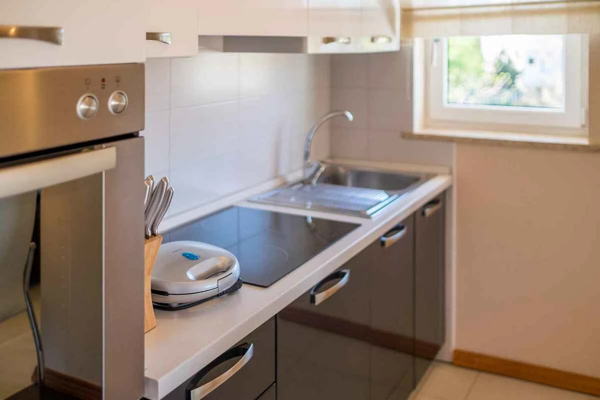 Vantačići, frazione Vantačići. L' appartamento vacanze si trova in una trama del giardino chiuso con prato, fiori, arbusti e alberi, delimitata da una recinzione e una siepe. Il padrone di casa vive stabilmente nella casa, ma usa un ingresso separato. vicino al mare L'accesso avviene vicino a una strada secondaria (asfaltata). Parcheggio (per 1 auto) in posto auto coperto e sulla proprietà.
