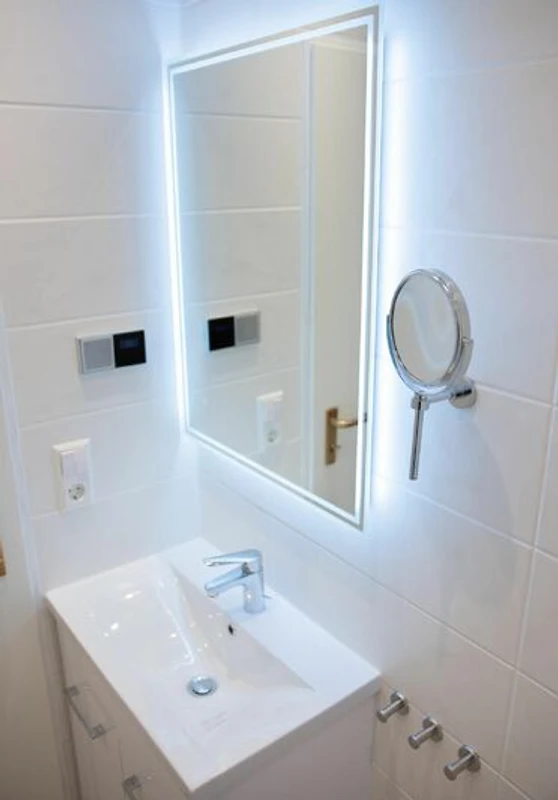 Molto ben arredato. La cucina è però solo minimalista. Ci è mancato un asciugacapelli. Il garage sotterraneo è adatto solo per auto di piccole dimensioni.
